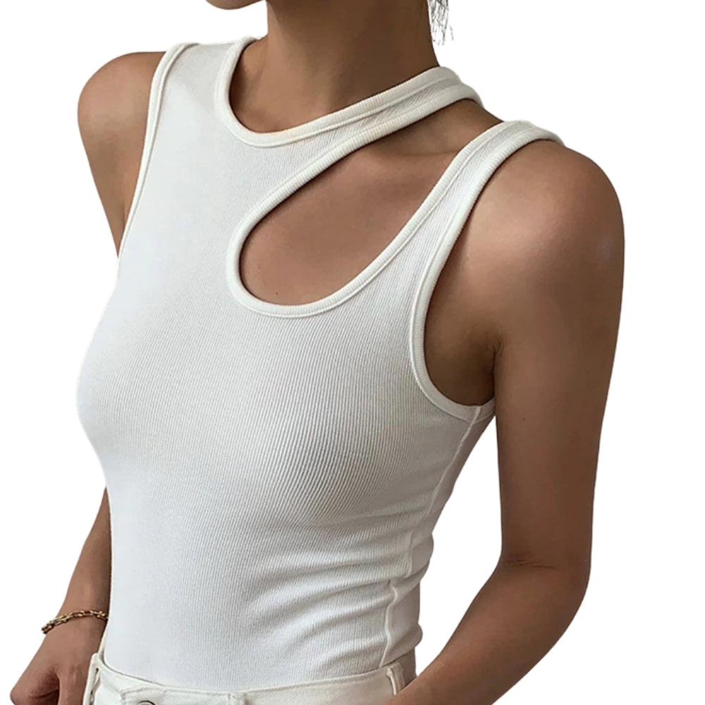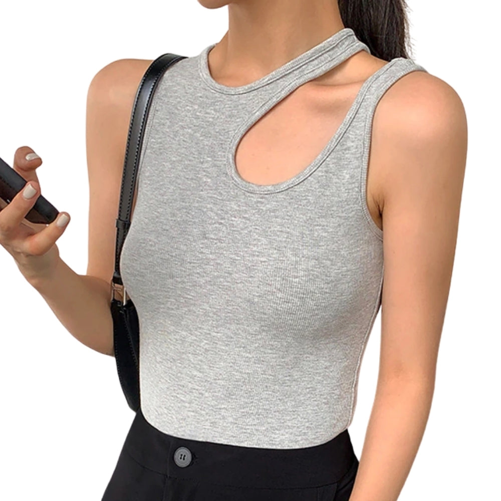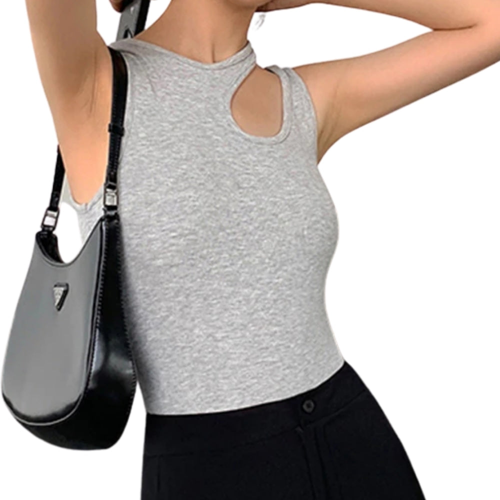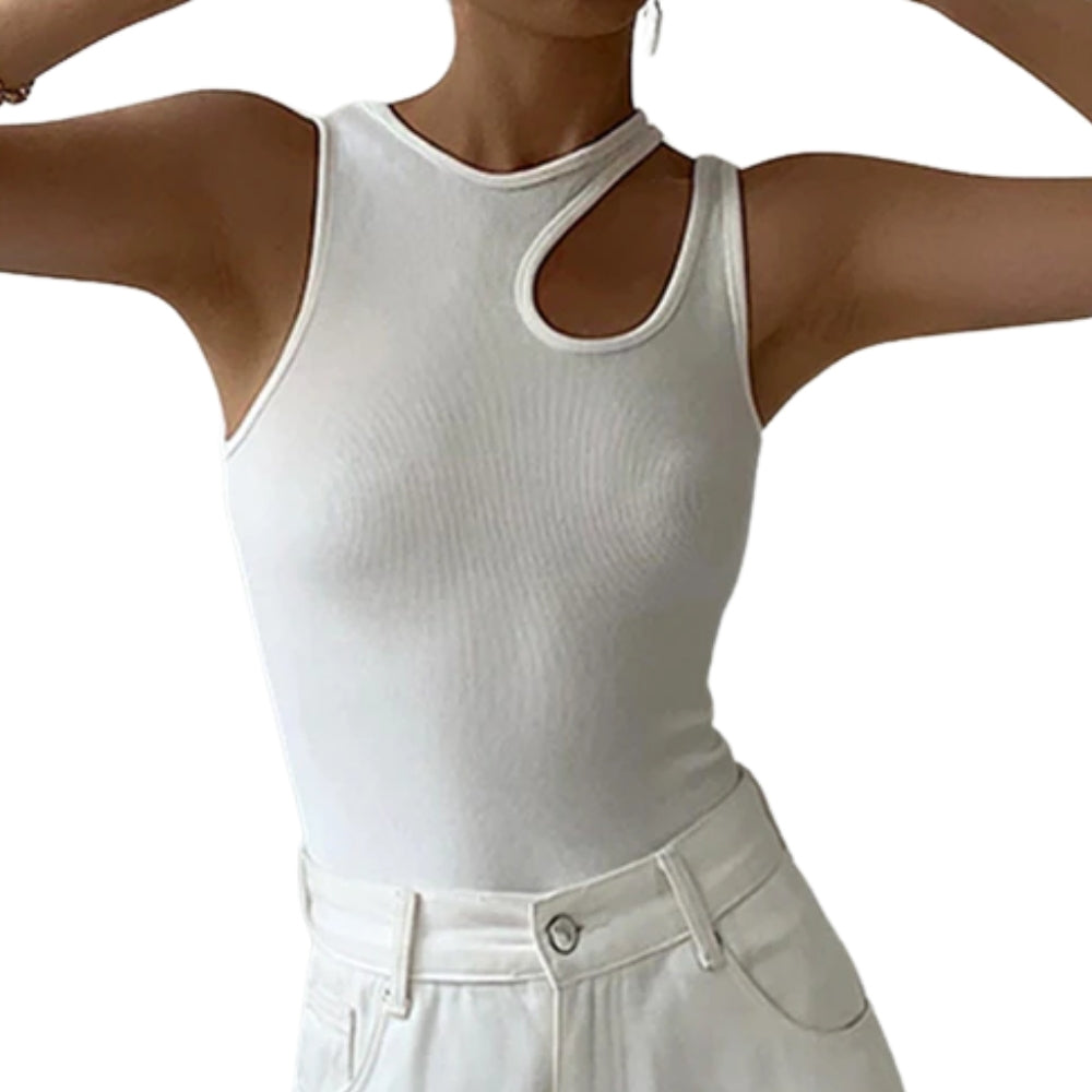 Get that chic vibe going in this adorable Ariana top! It features sleeveless, a stylish neckline design, and form-hugging fit. Best paired with jeans!