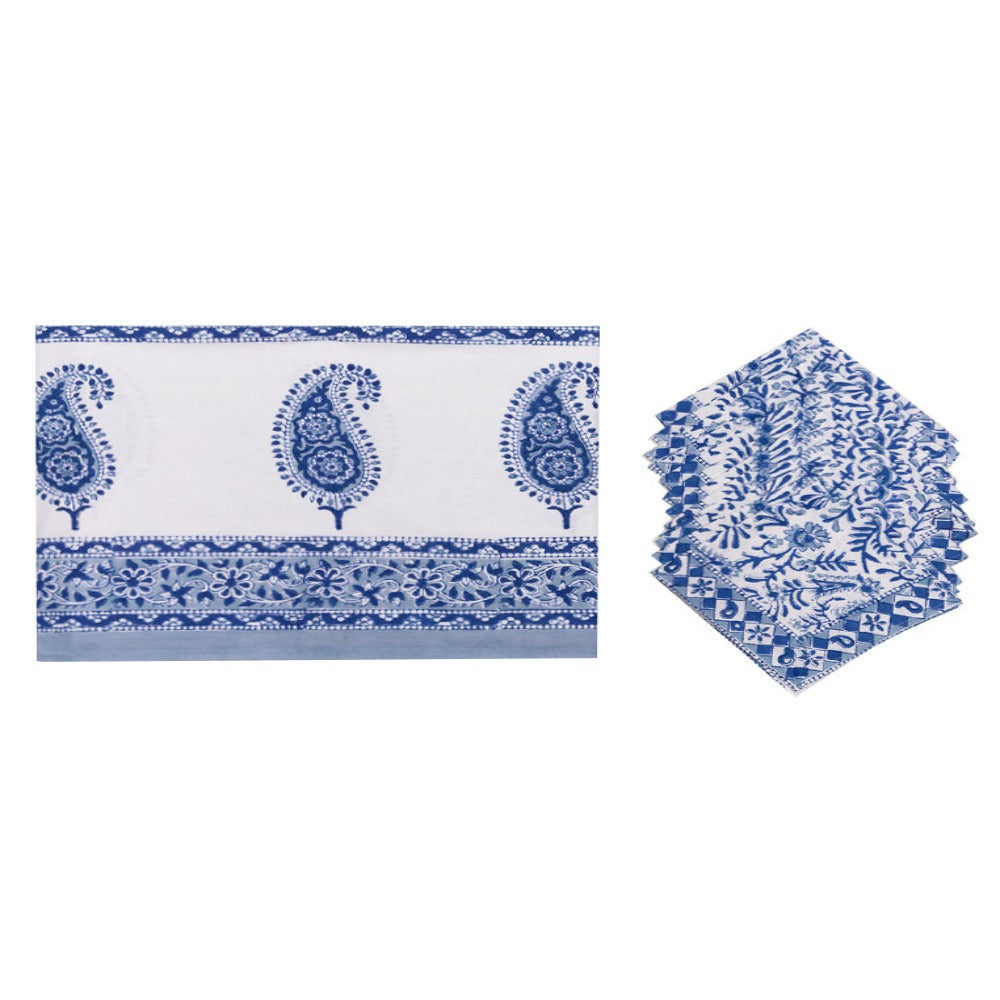 Brighten up your table setting for any occasion with our authentic hand printed Tablecloth Set from India! This lightweight cotton tablecloth is easy to throw over any dining table and is adorned with playful block print to bring a soft texture and whimsical touch to rest of your tableware.