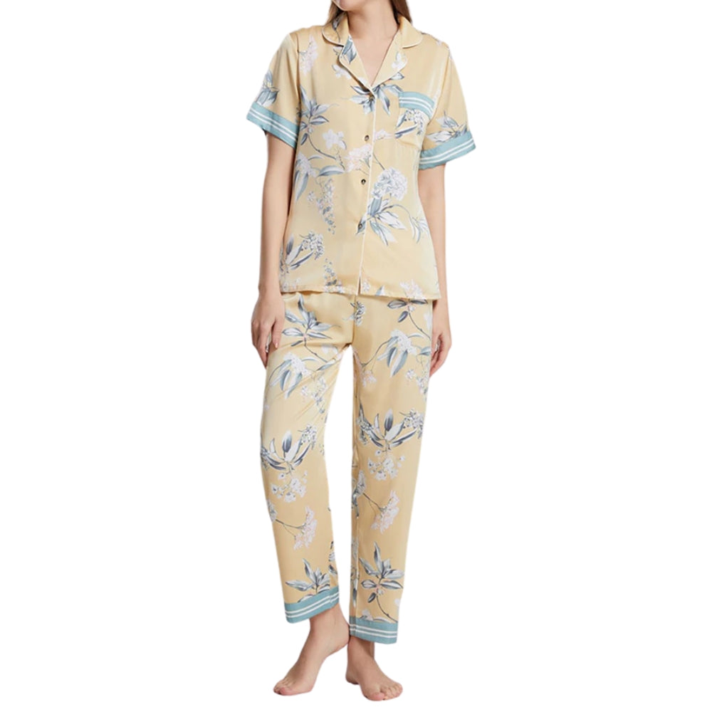 Lovely prints in our Blenda pajamas. Silk, Spandex and Rayon fabrics.