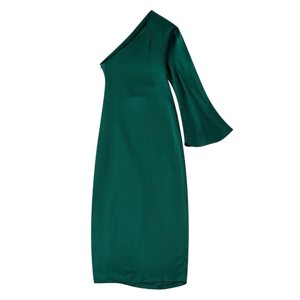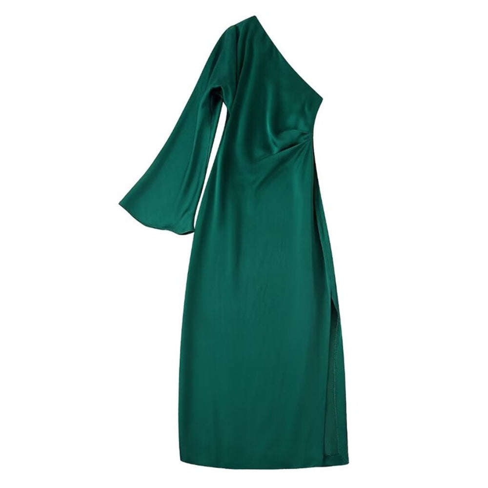 Velice Women Midi Dress Vintage One Shoulder Long Sleeves.