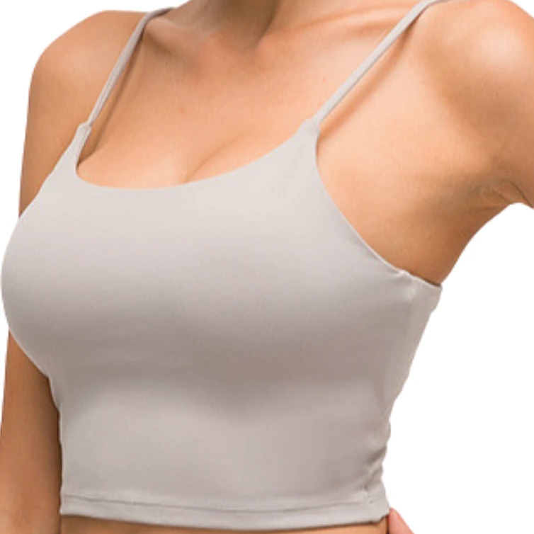 Stretch, sweat and flow in the Doris tank. It’s made with performance fabric and has a classic straight neckline, cropped silhouette and spaghetti straps. Perfect for pairing with all your high waists. This style is lightly padded.