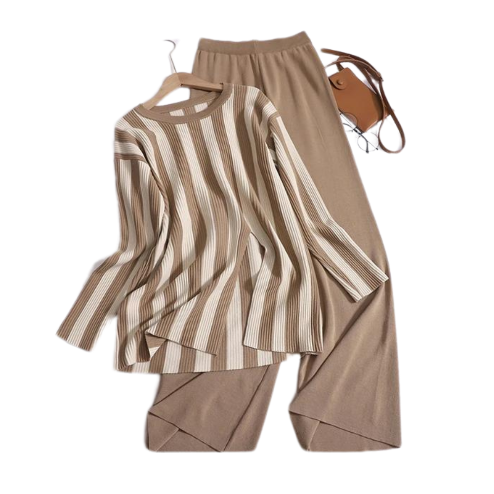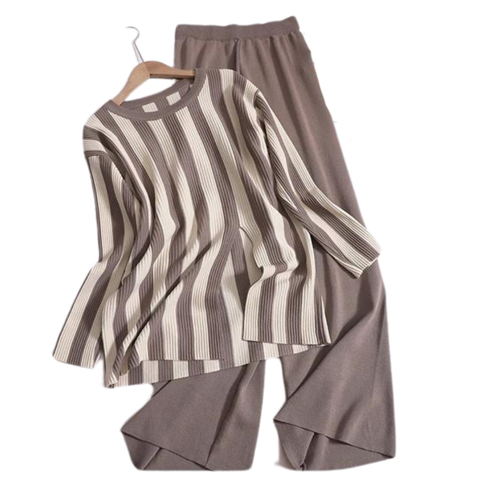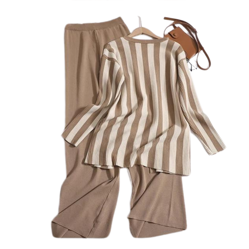 Ella Coordinates Long Sleeve Split Top and High Waisted Wide Leg Pant Set.
