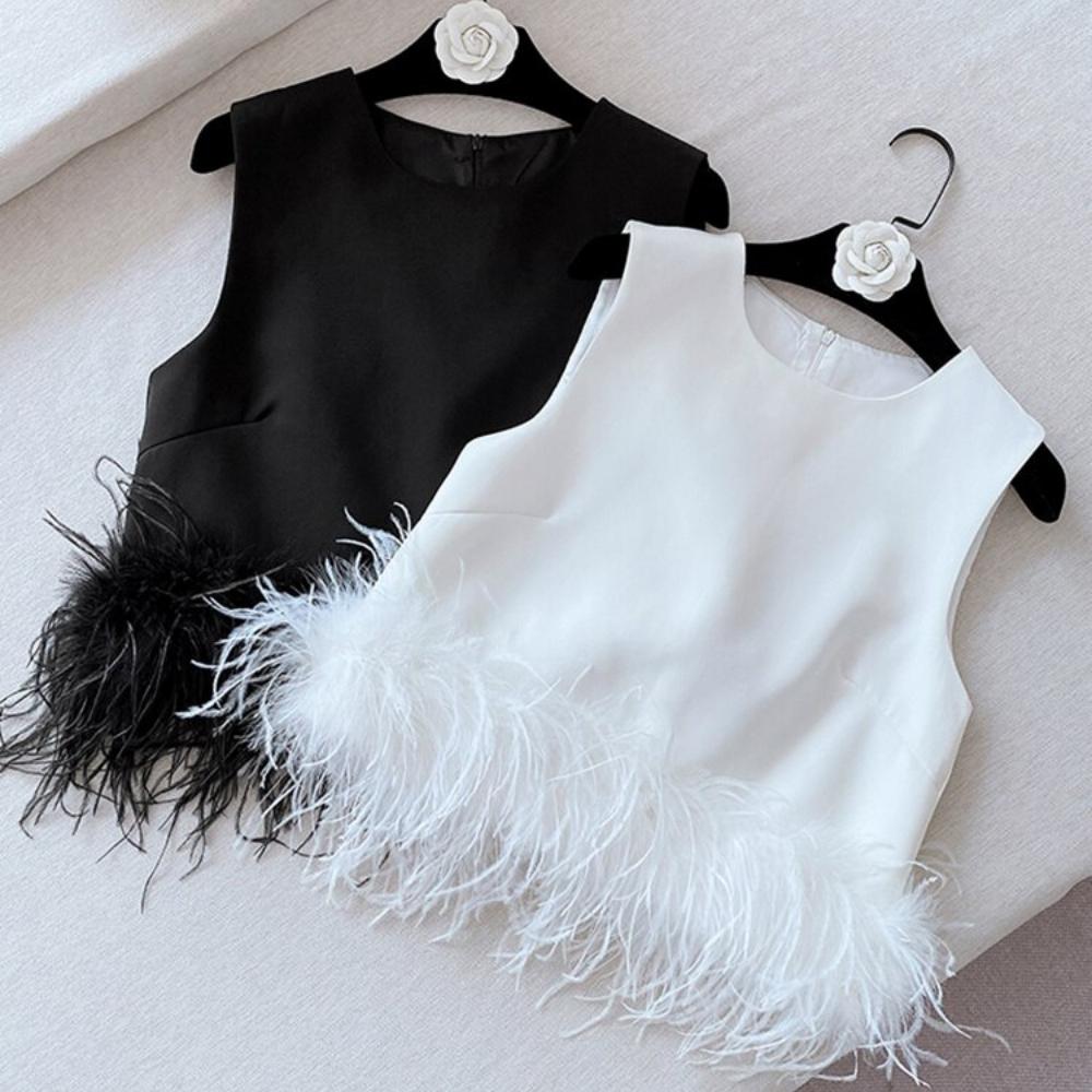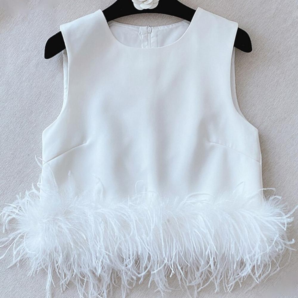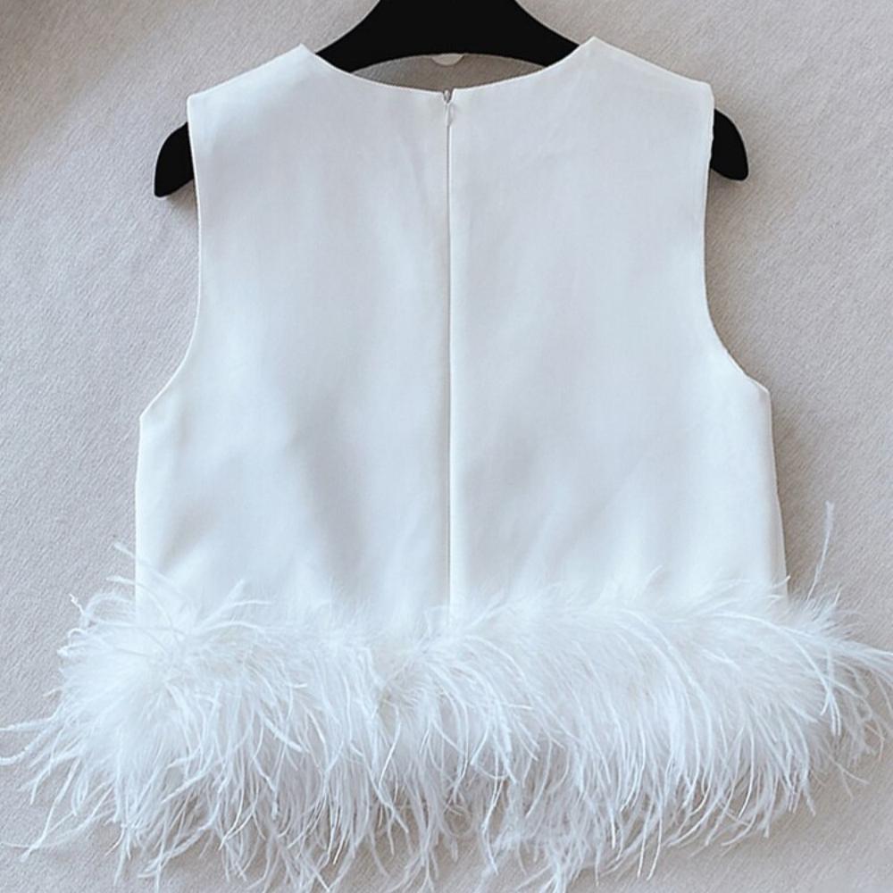 This Fenita top is cut for a slightly loose fit with fur details in the hem. Available also in Black color.