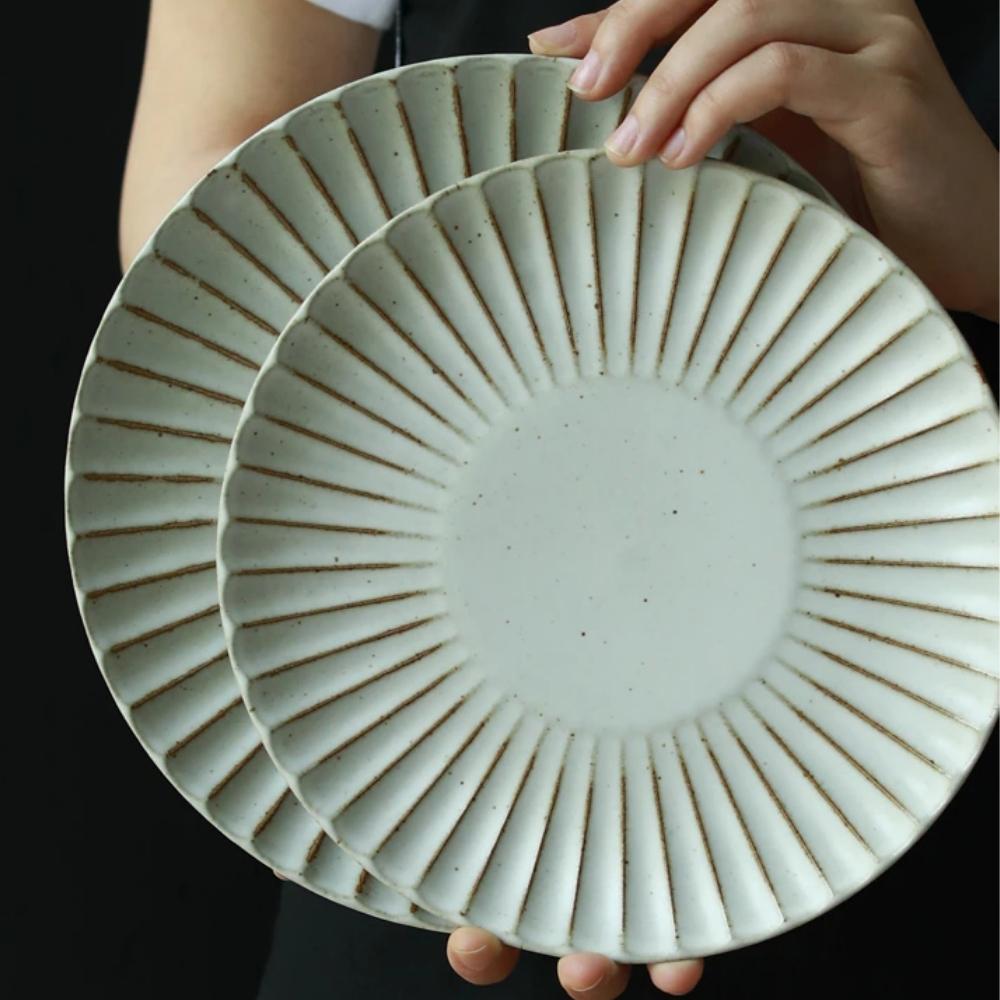 Neutral vintage ceramic plates. Available in 2 sizes.