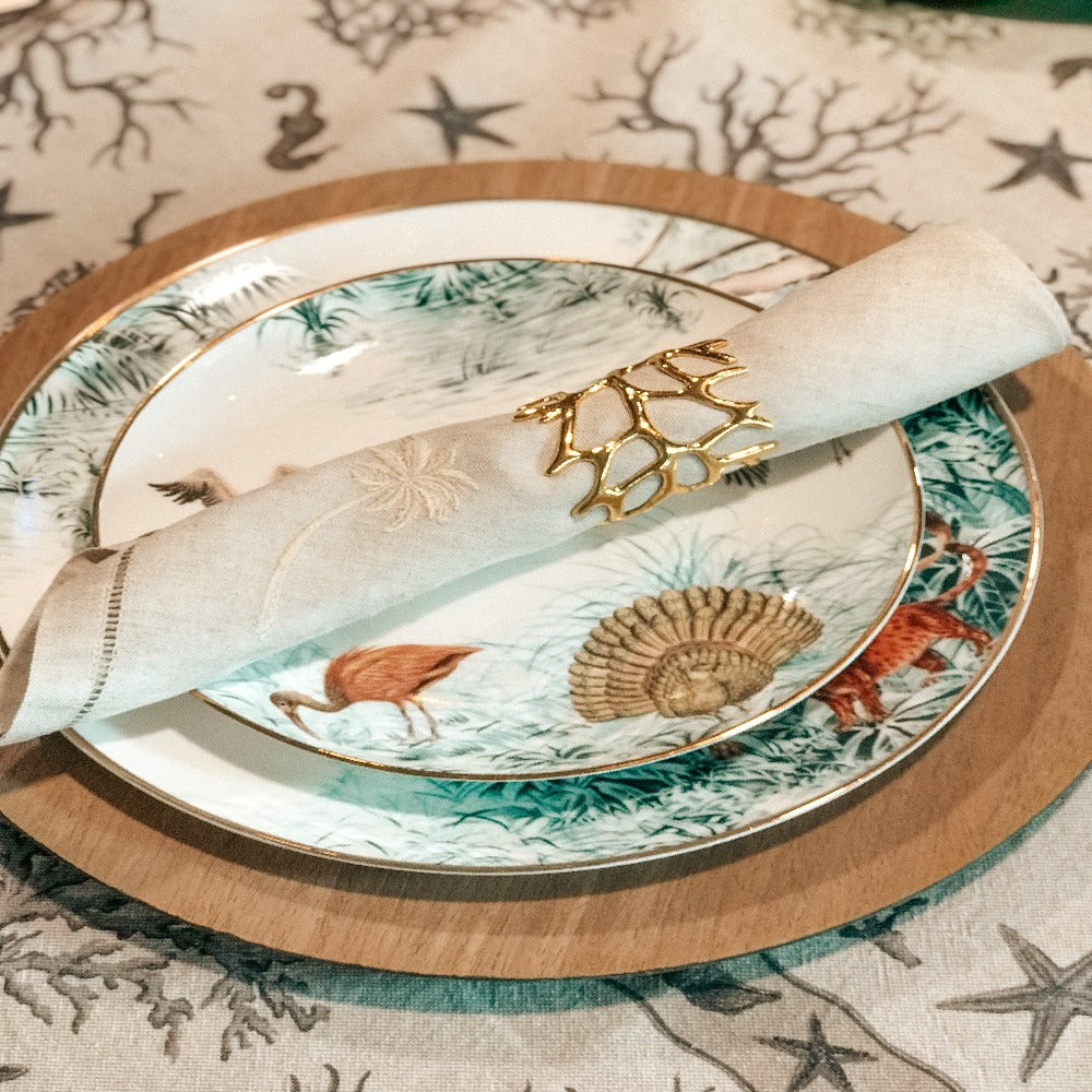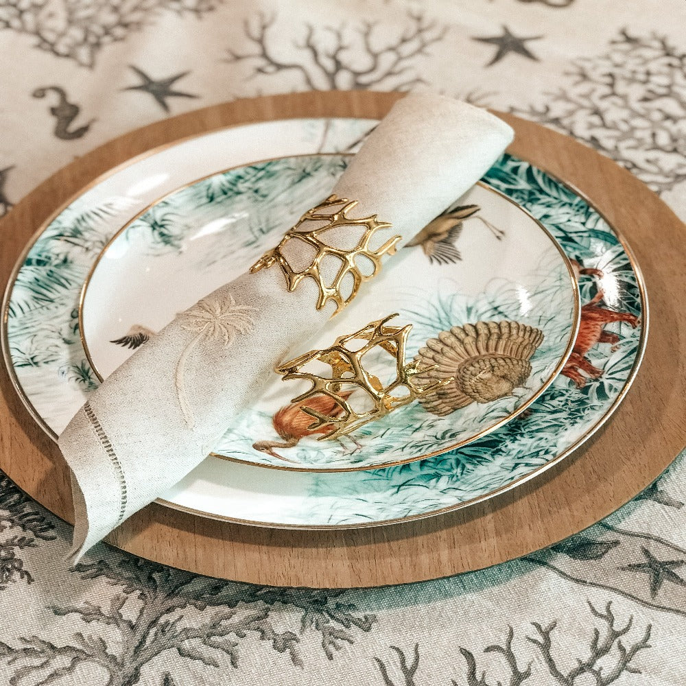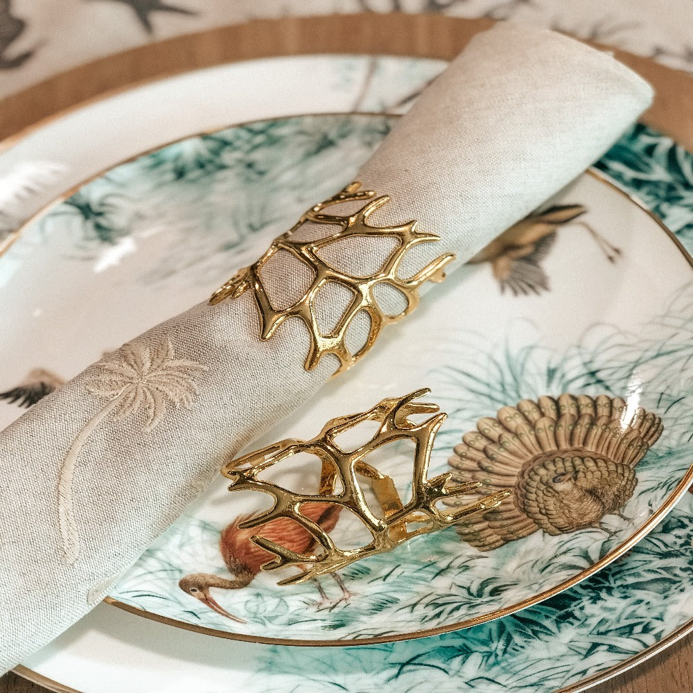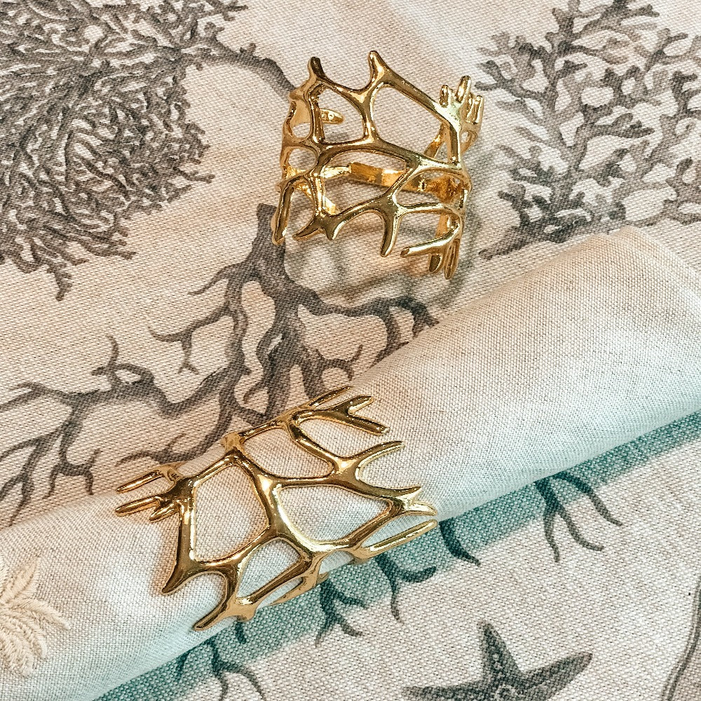 Table dressing. Fashioned like shimmering bracelets. Use them to add instant shine to place settings.