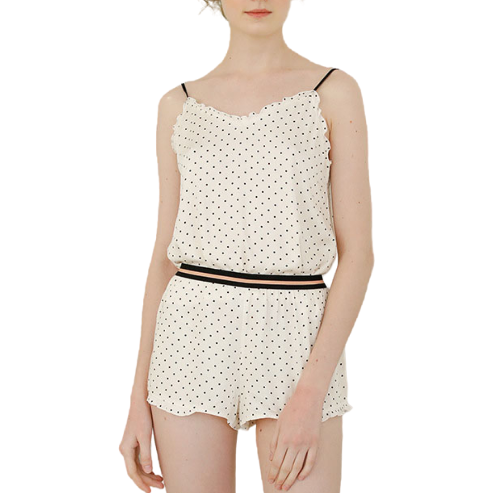 The Gylda puts comfort at the forefront of its design.This pajama set is patterned in a classic dotted print and has a relaxed fit and pretty trims. Add your favorite slippers while lounging at home.