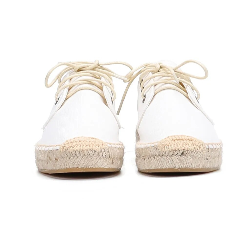Hakki is a T-strap Hemp Rubber Lace-up Casual. Womens Espadrilles Flat Shoes.