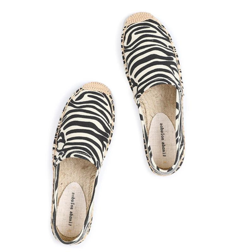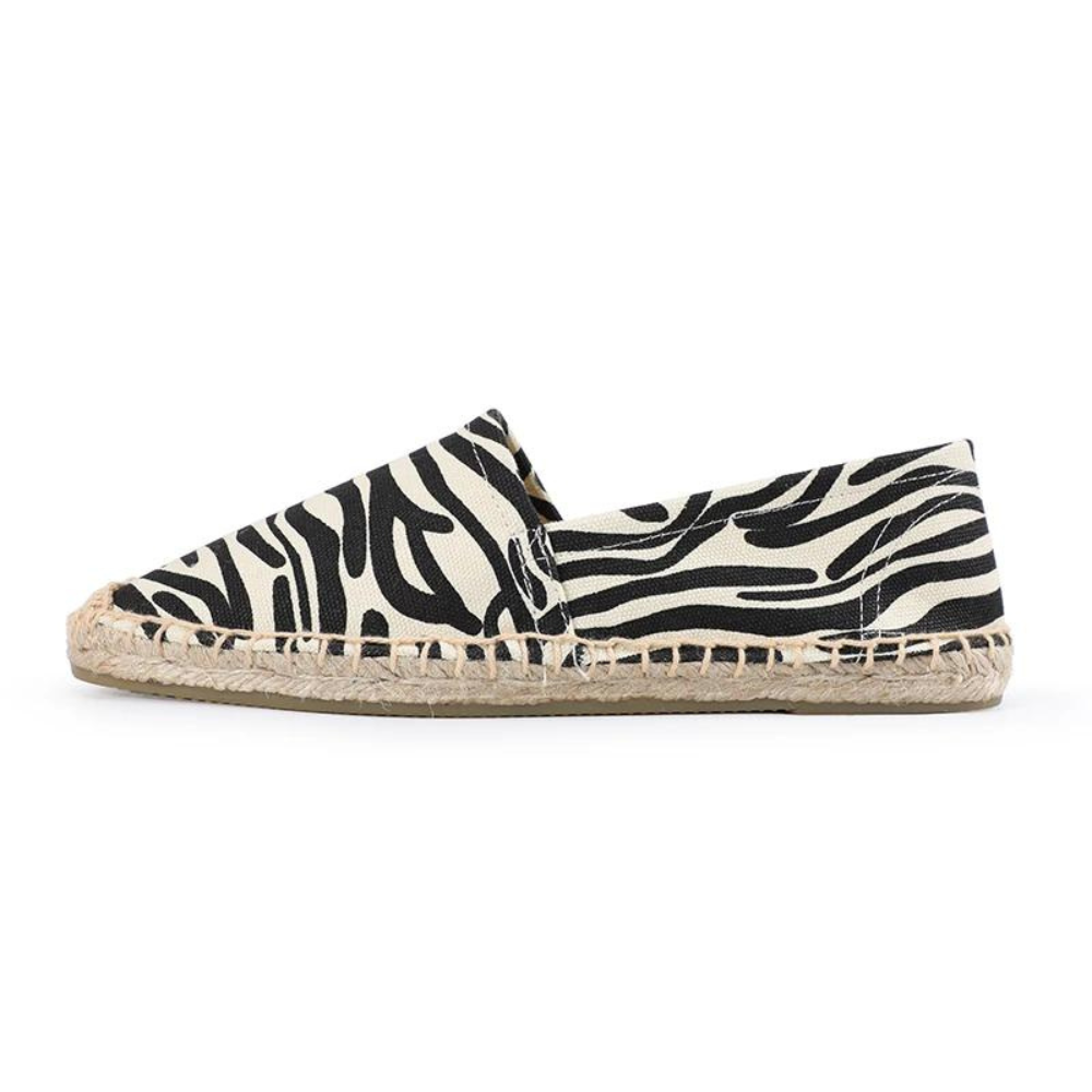 A stripes pattern espadrilles flats for women made with cotton fabric.