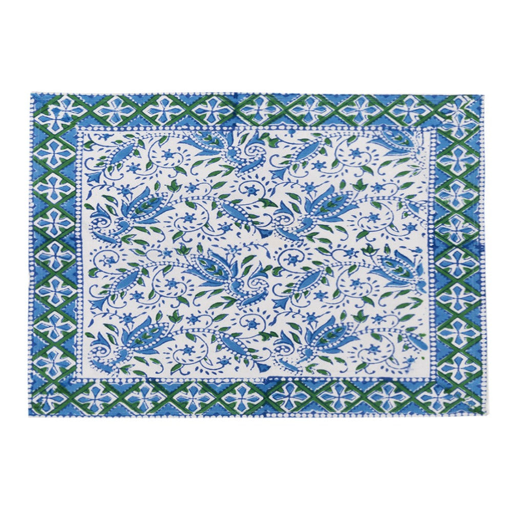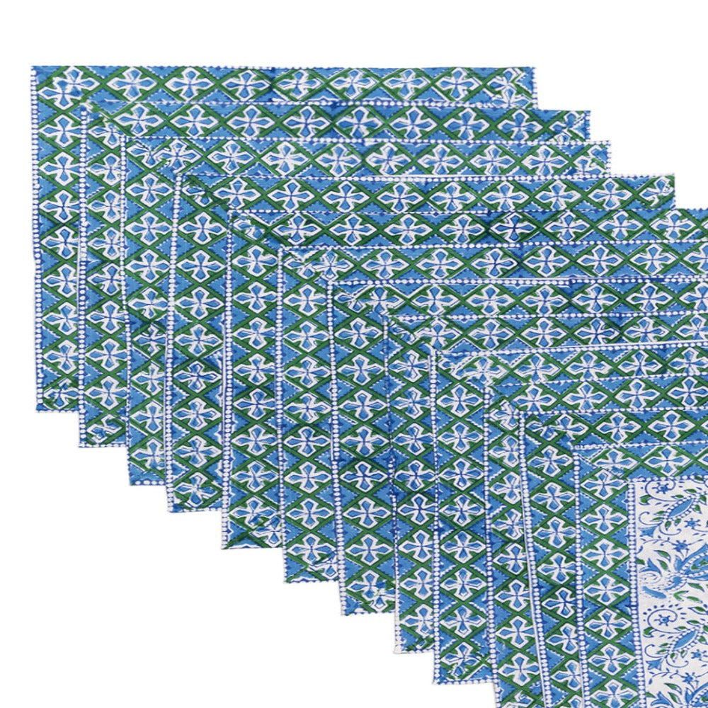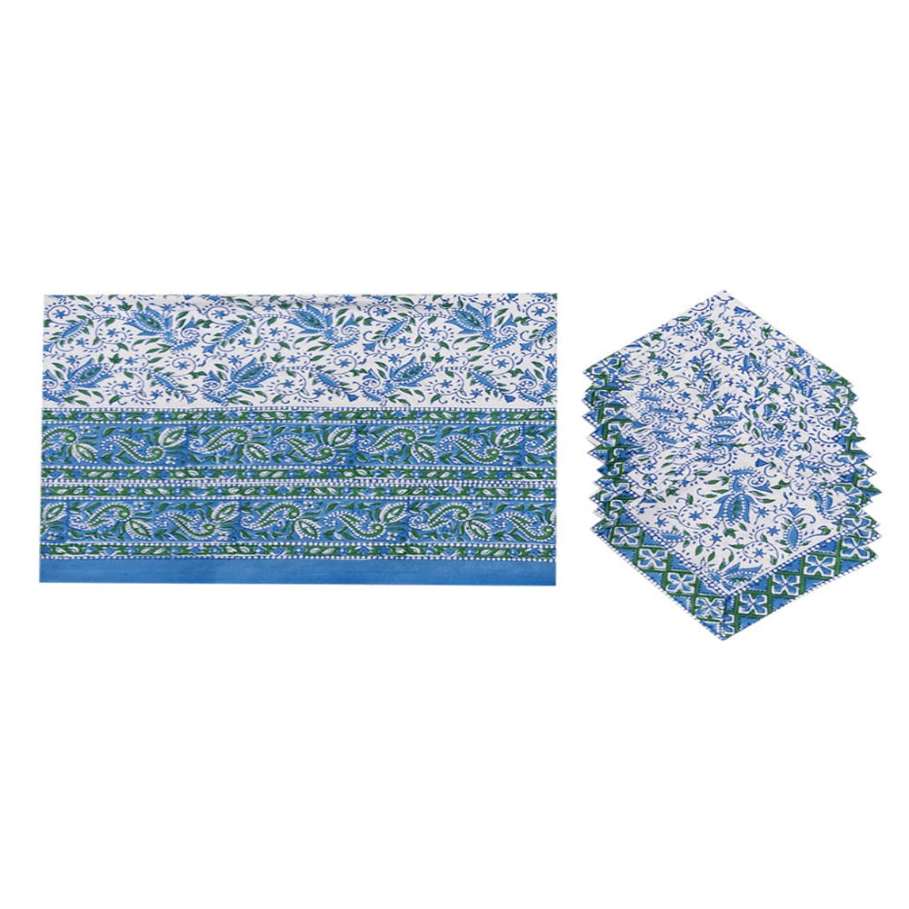 Brighten up your table setting for any occasion with our authentic hand printed Tablecloth Set from India! This lightweight cotton tablecloth is easy to throw over any dining table and is adorned with playful block print to bring a soft texture and whimsical touch to rest of your tableware.