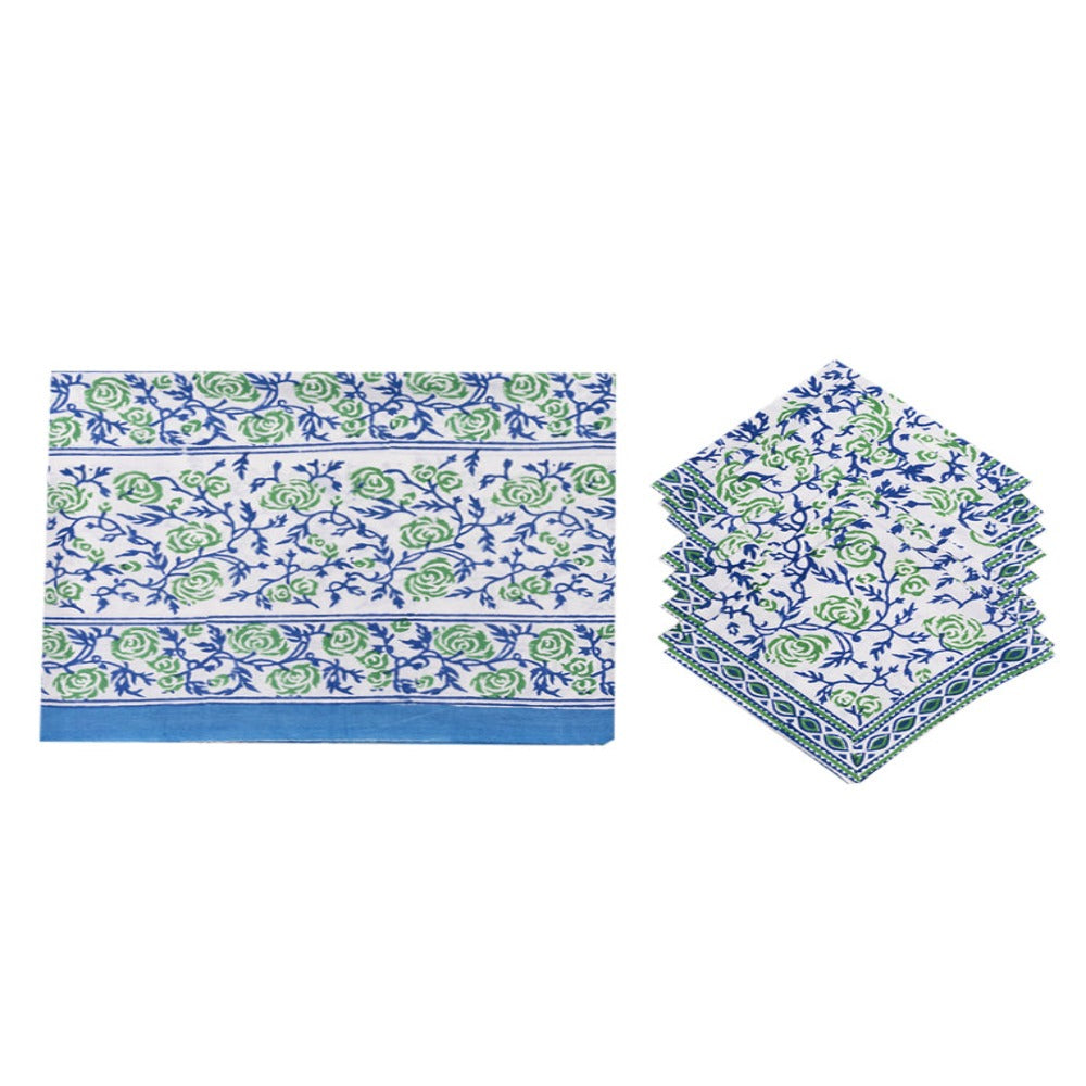 Brighten up your table setting for any occasion with our authentic hand printed Tablecloth Set from India! This lightweight cotton tablecloth is easy to throw over any dining table and is adorned with playful block print to bring a soft texture and whimsical touch to rest of your tableware.