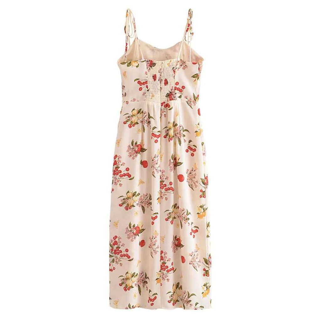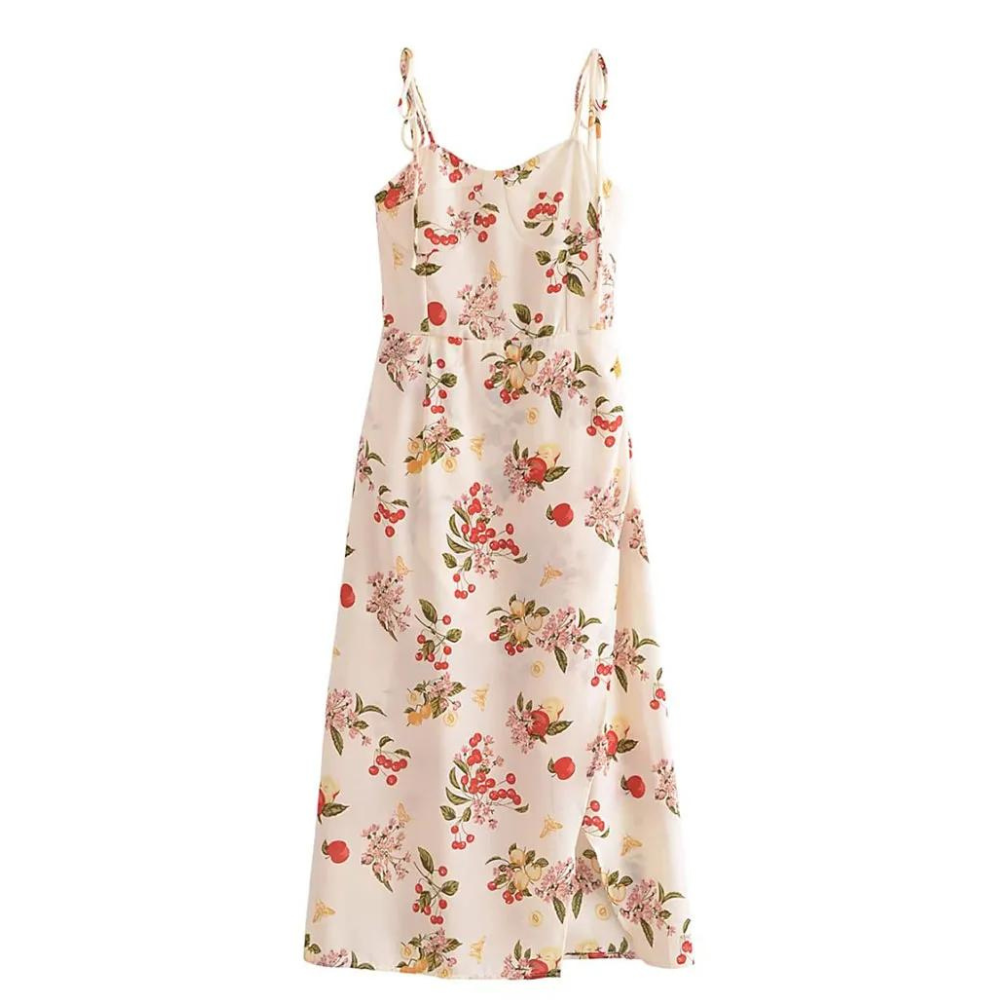 Joylyn Women's Floral Print Midi Dress – a delightful fusion of vintage charm and contemporary style. Featuring spaghetti straps and a sweetheart neckline, this dress exudes feminine allure. The front slit adds a touch of playfulness, while the back zipper ensures a perfect fit. Elevate your wardrobe with this chic and versatile piece, perfect for ladies who appreciate classic elegance with a modern twist in women's fashion.