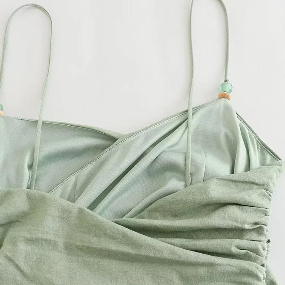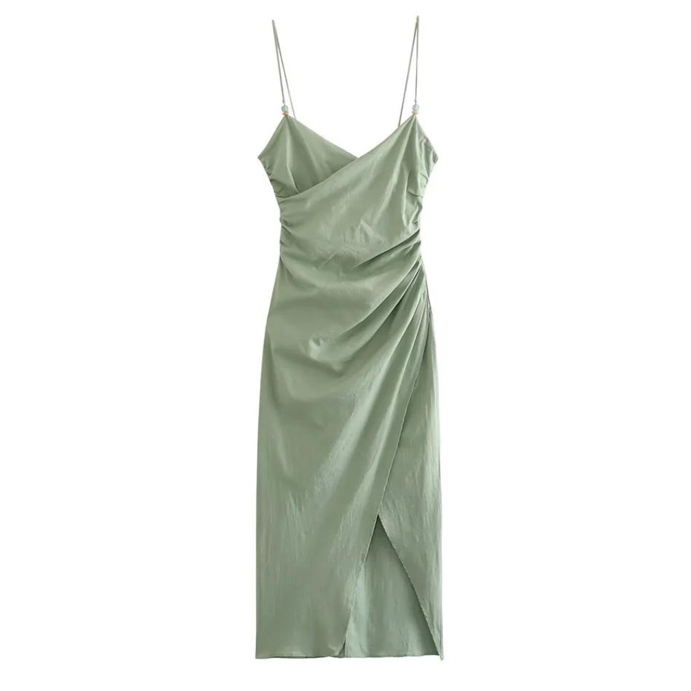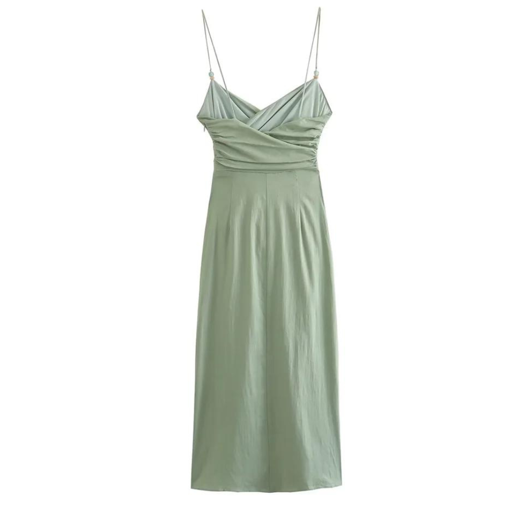 Juvy's Dress Women's Pleated Front Slit Midi Dress – a captivating piece that seamlessly blends chic style with vintage allure. Featuring a backless design, V-neck, and spaghetti straps, this dress embodies modern elegance. The pleated front slit adds a touch of sophistication, while the side zipper ensures a perfect fit. This dress is not just fashion; it's a statement piece for the cycling fashion enthusiast. Elevate your wardrobe with this chic and versatile midi dress, perfect for making a bold and fashionable impression.