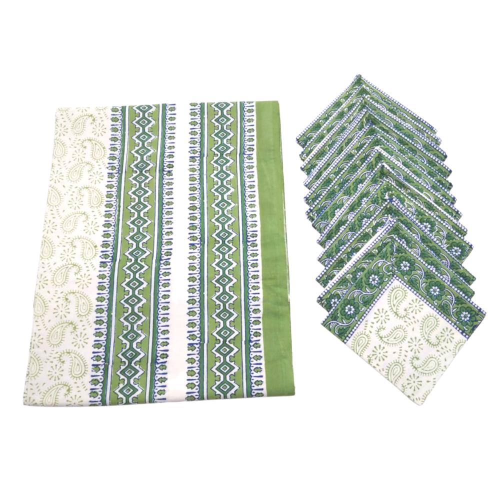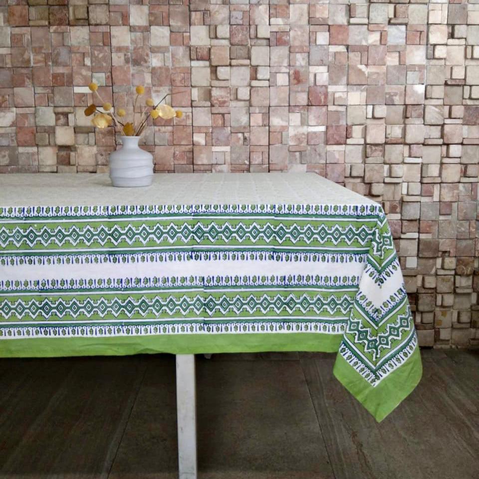 Brighten up your table setting for any occasion with our authentic hand printed Tablecloth Set from India! This lightweight cotton tablecloth is easy to throw over any dining table and is adorned with playful block print to bring a soft texture and whimsical touch to rest of your tableware.