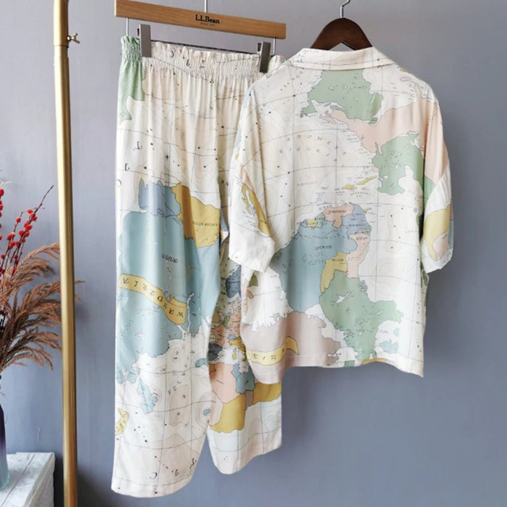 | Bust | Sleeve | Shoulder | Top length | Pants length | Waist | Hips | |