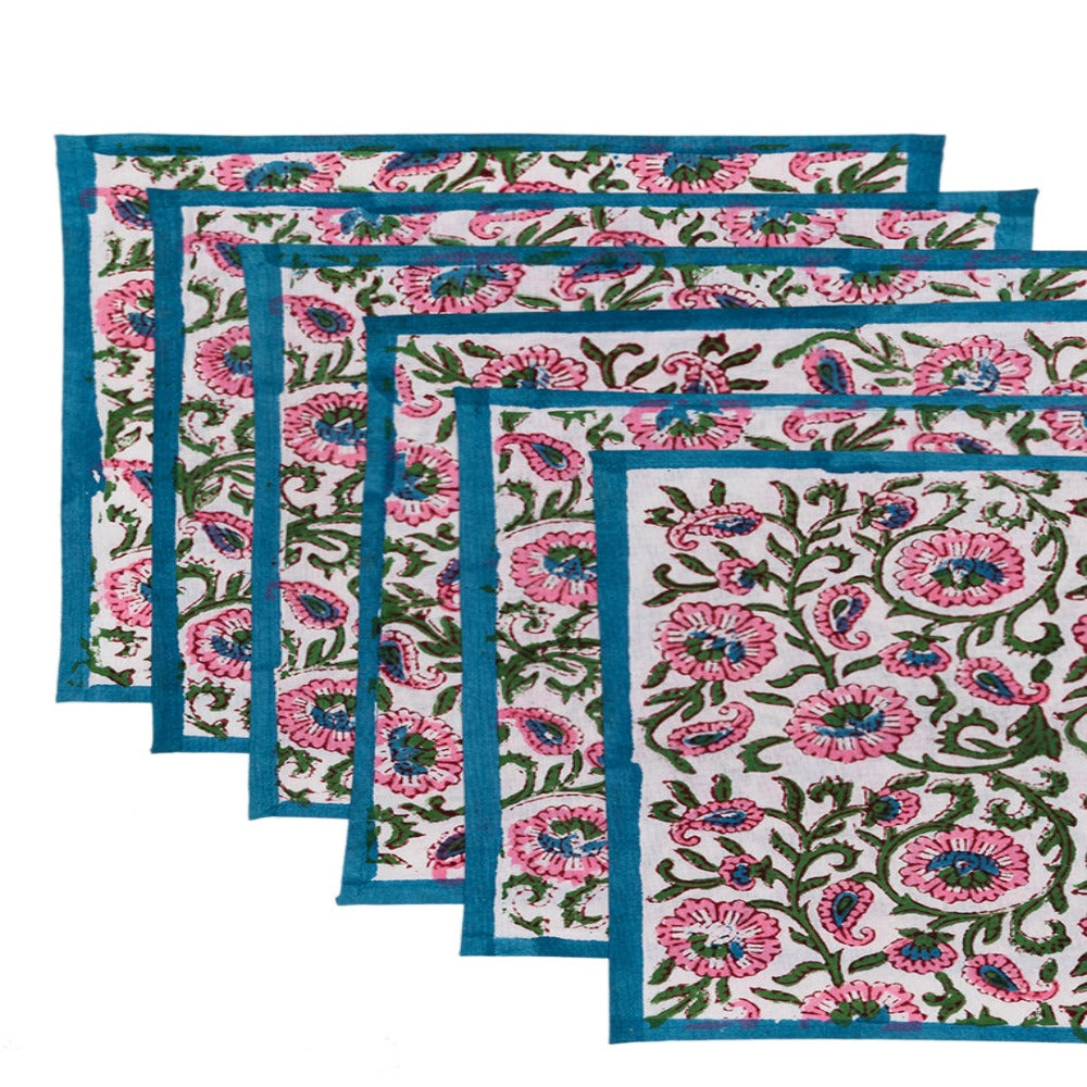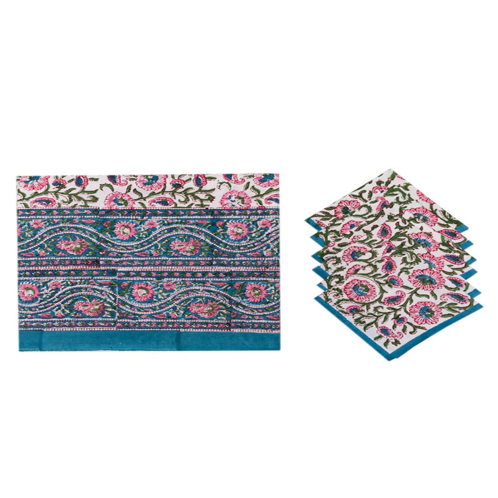 Brighten up your table setting for any occasion with our authentic hand printed Tablecloth Set from India! This lightweight cotton tablecloth is easy to throw over any dining table and is adorned with playful block print to bring a soft texture and whimsical touch to rest of your tableware.