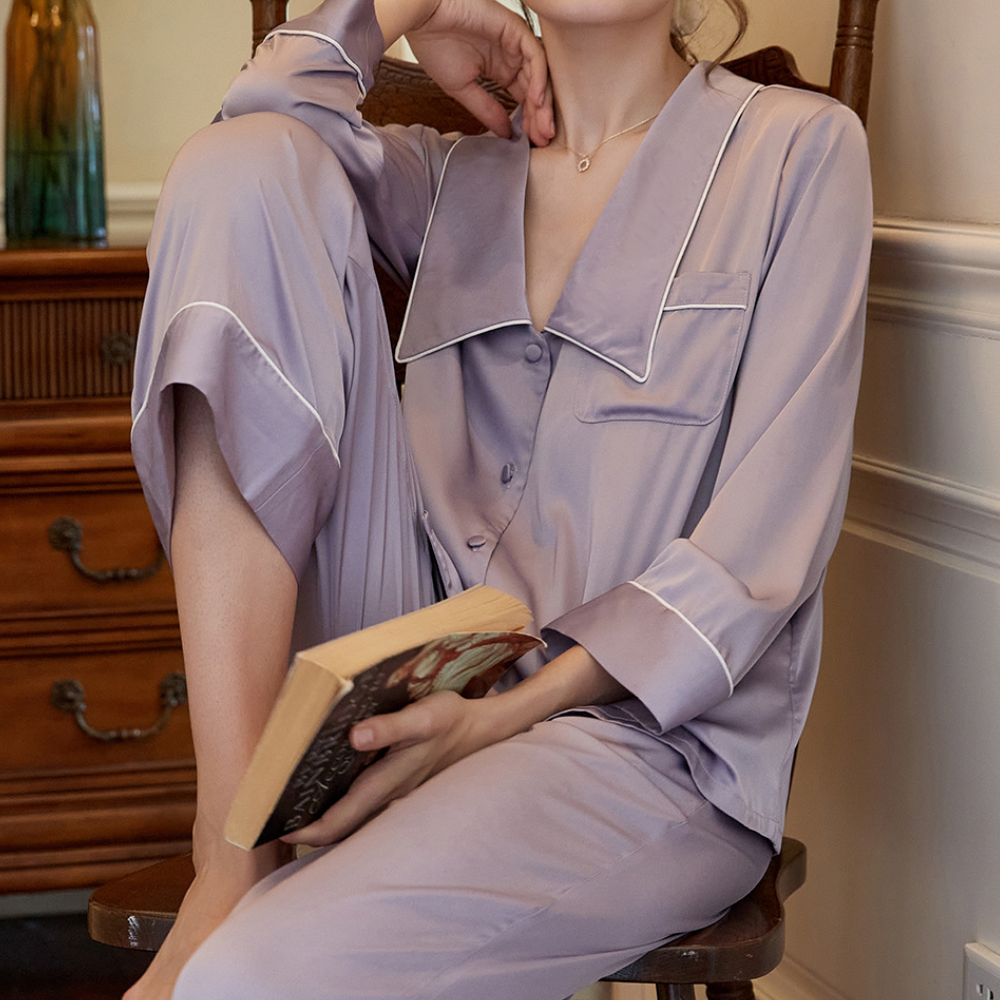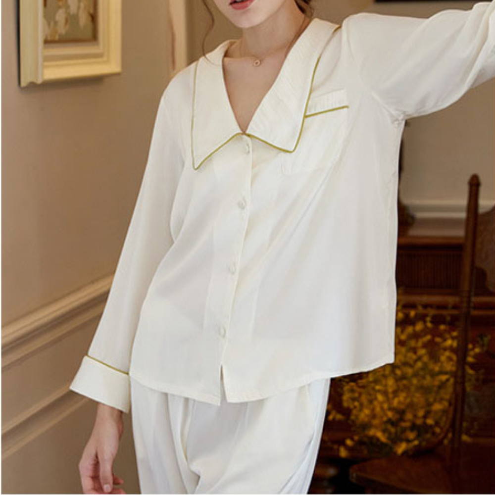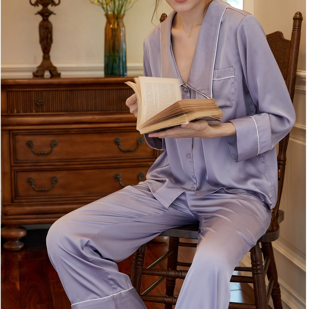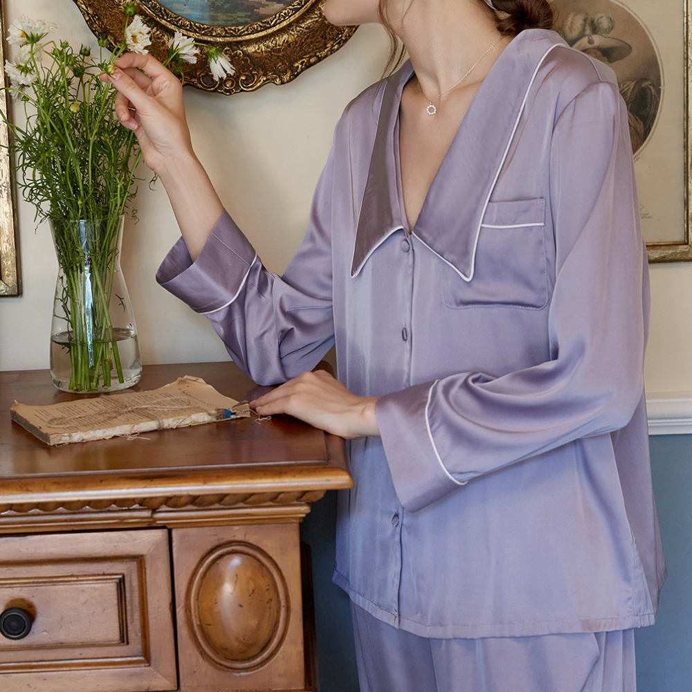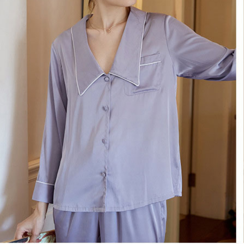 The Clemz pajamas are available in two shades - violet and white. Cut from sumptuously soft cottonin a relaxed fit, they have neatly piped edges and covered buttons. When you aren't wearing them to bed, you could pair the shirt with jeans.