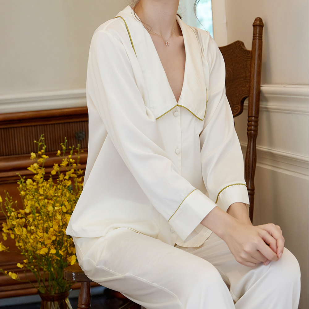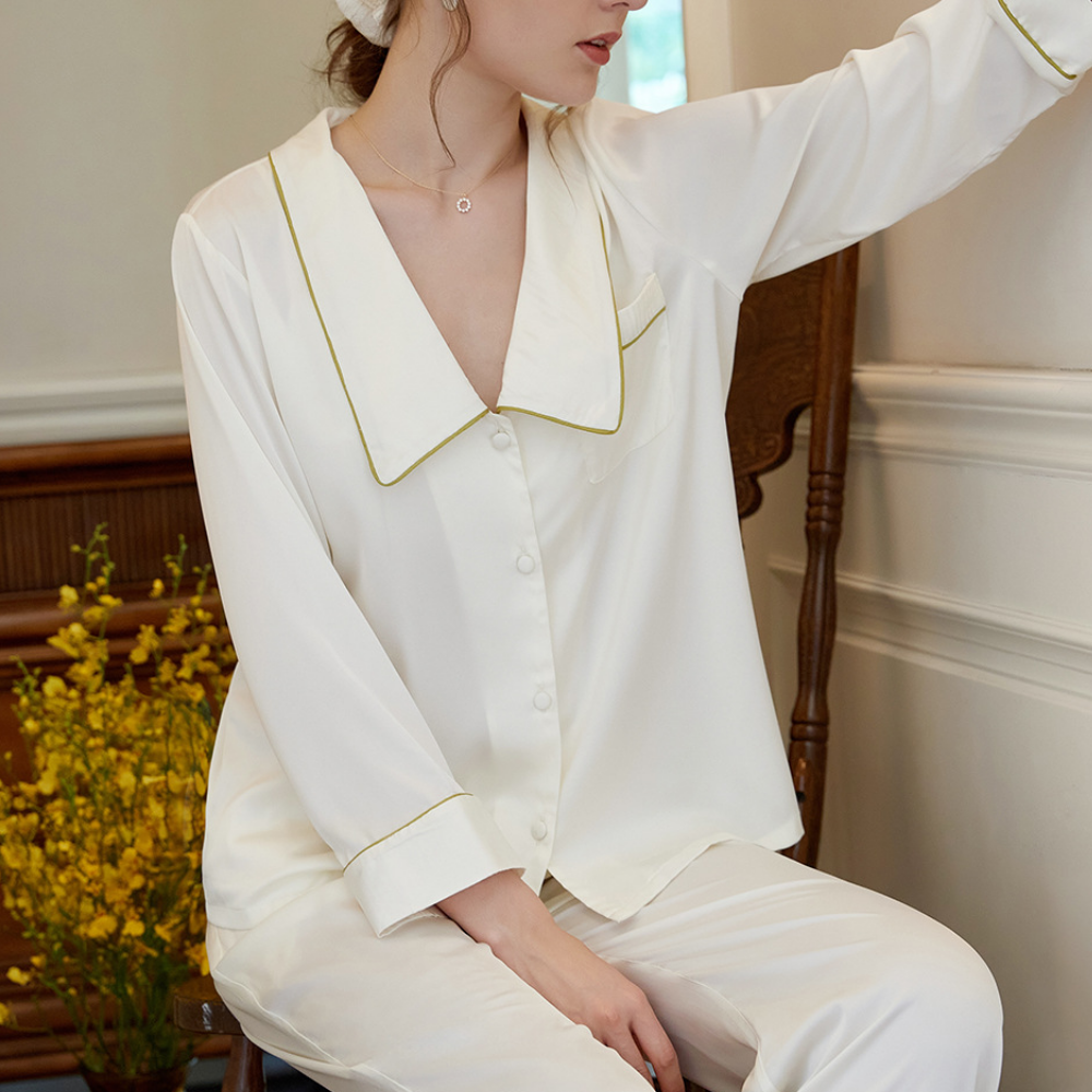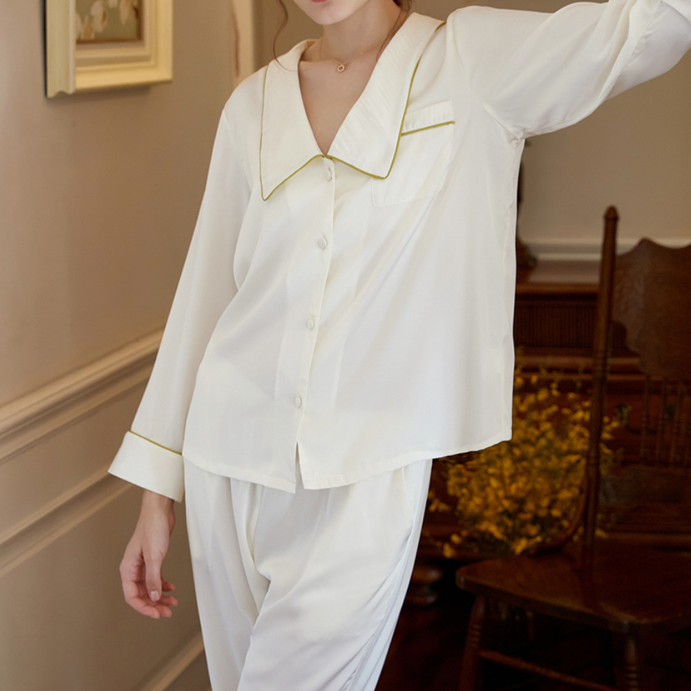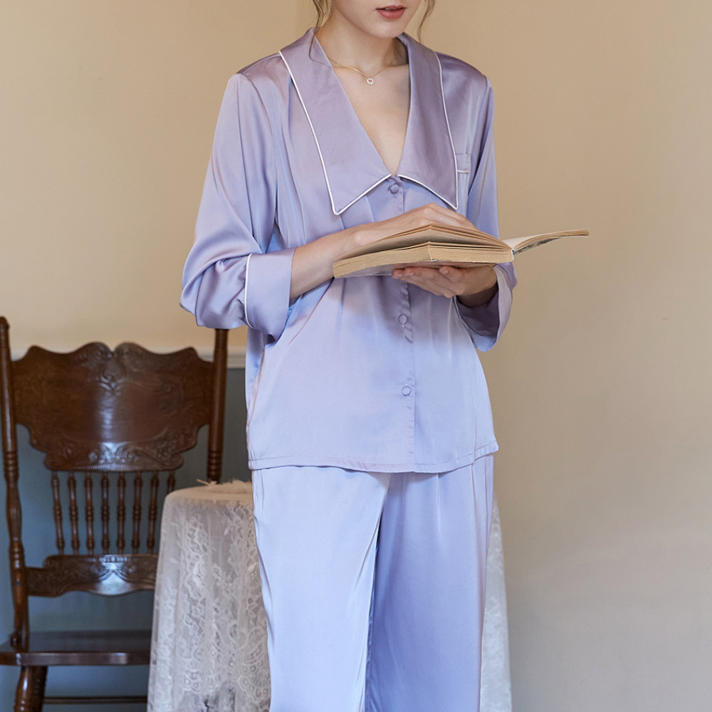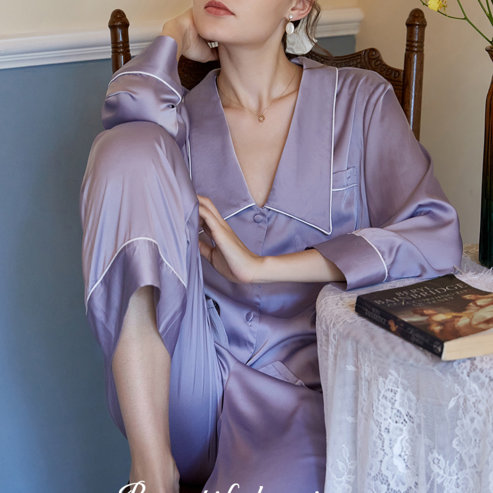 The Clemz pajamas are available in two shades - violet and white. Cut from sumptuously soft cottonin a relaxed fit, they have neatly piped edges and covered buttons. When you aren't wearing them to bed, you could pair the shirt with jeans.