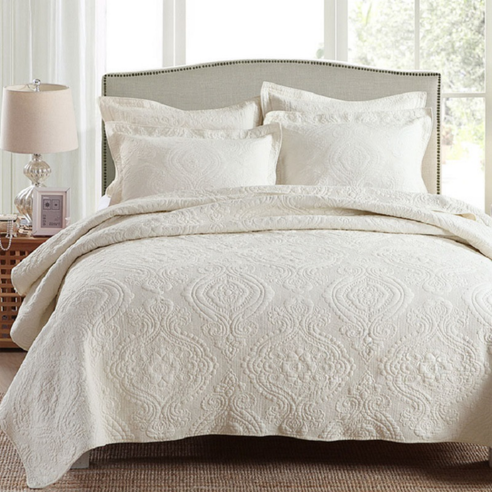 The Lyon bedspread set is a stunning accent piece for every bedroom space. Available in a number of colors that create a symmetrical focal point in any room, the light spread in soft and quilted cotton is perfect for a cosy night in bed - the crowning glory for any modern bed. 100% cotton.