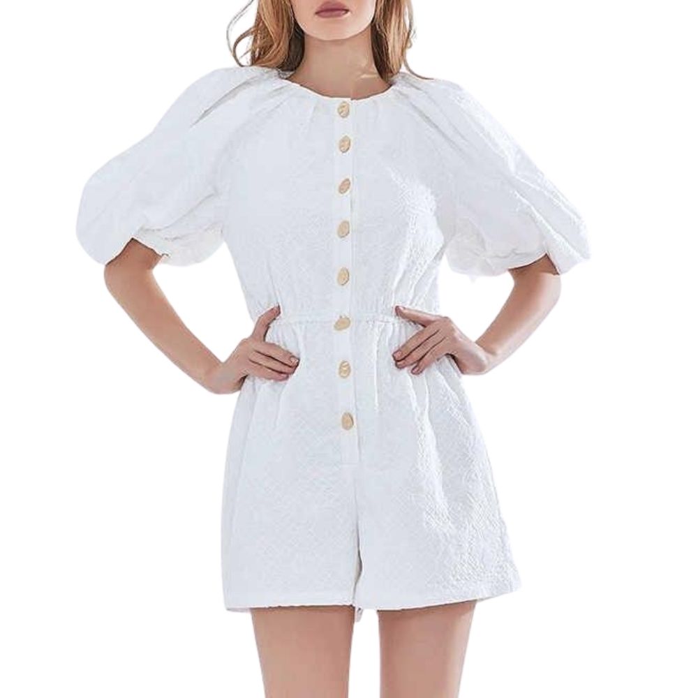 Enjoy the quality of our Preslee, Jumpsuit white with puff sleeve.