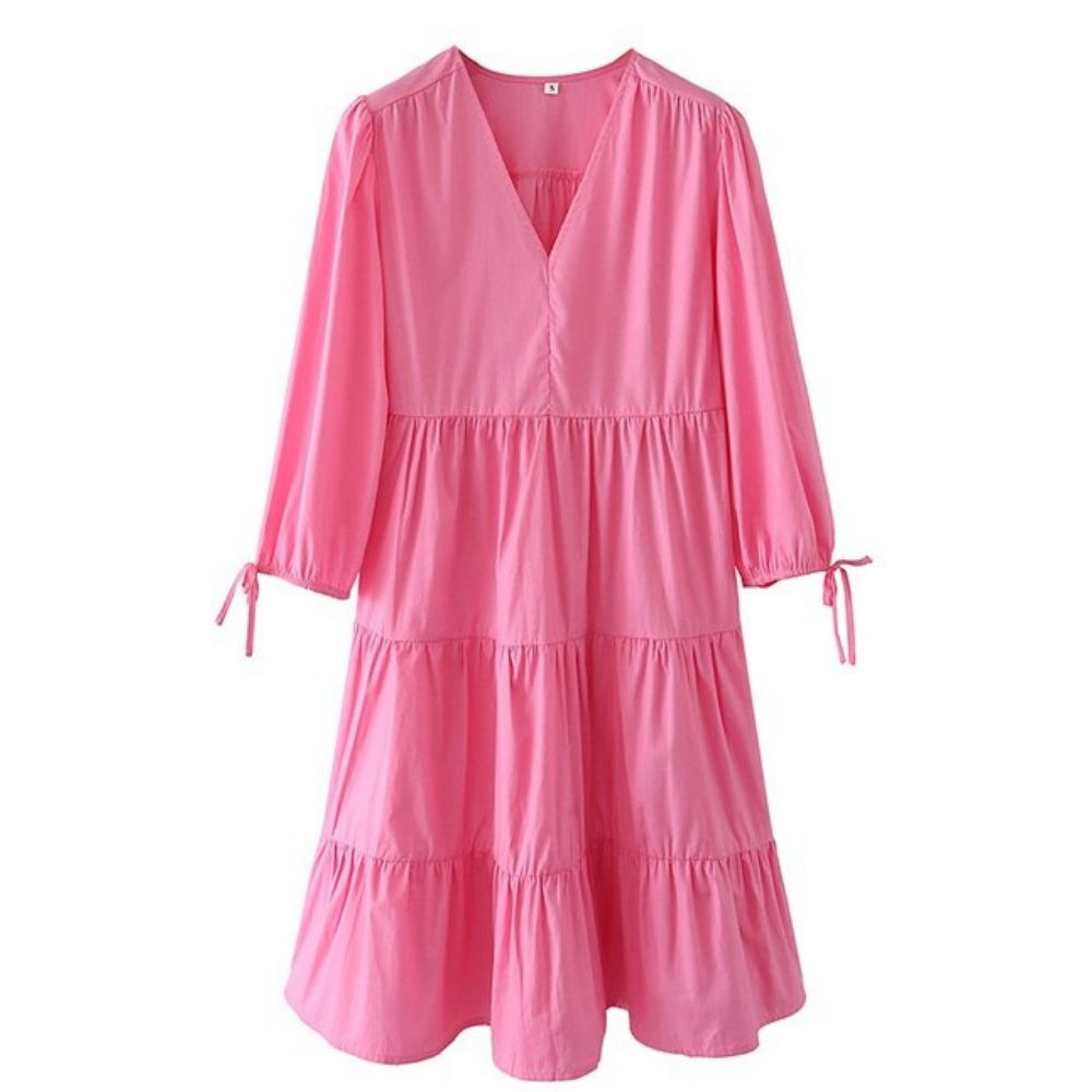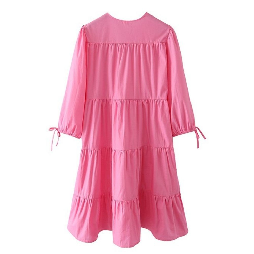 Qamar is a women with Lace Up Mini Dress Vintage V-Neck Half Sleeves.