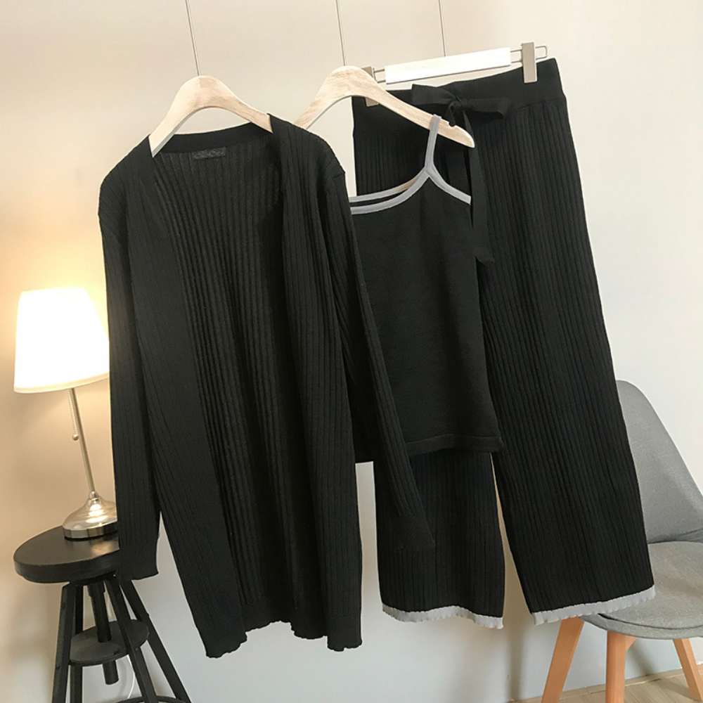 The perfect trio set you'd wear all day long. Style with the long knit kimono or wear as single pieces. have fun in mixing and matching this set.