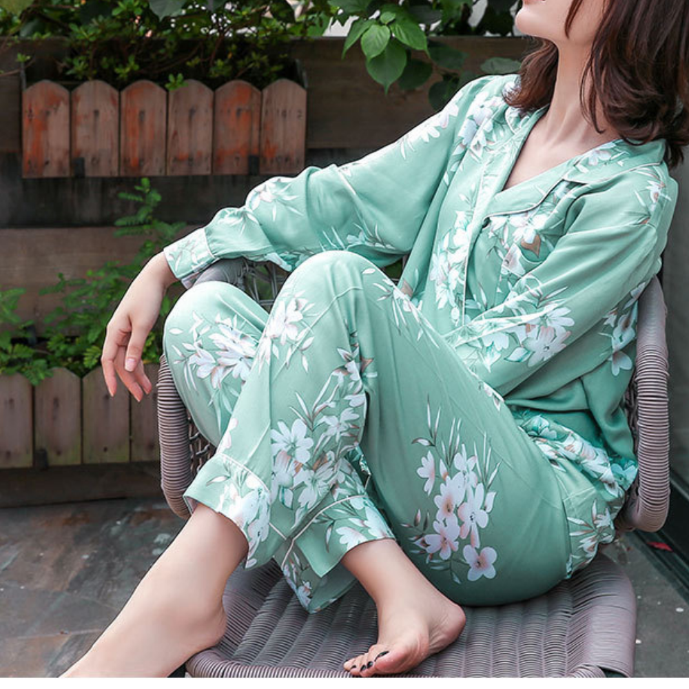 The Rica Pajamas are cut from fluid viscose that feels so smooth against the skin. They're printed with a vibrant floral motif and have a flowy, relaxed fit.
