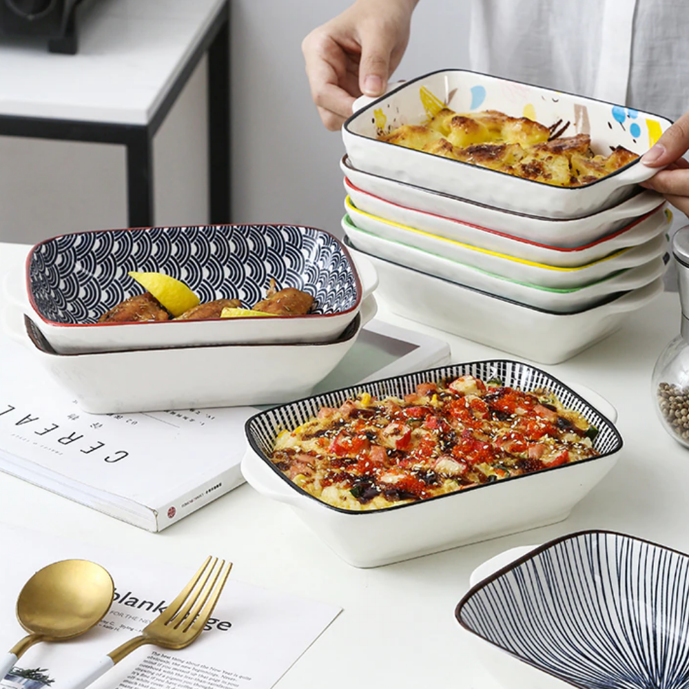 Add a modern look to your dinner table with these stylish rectangular bowls.