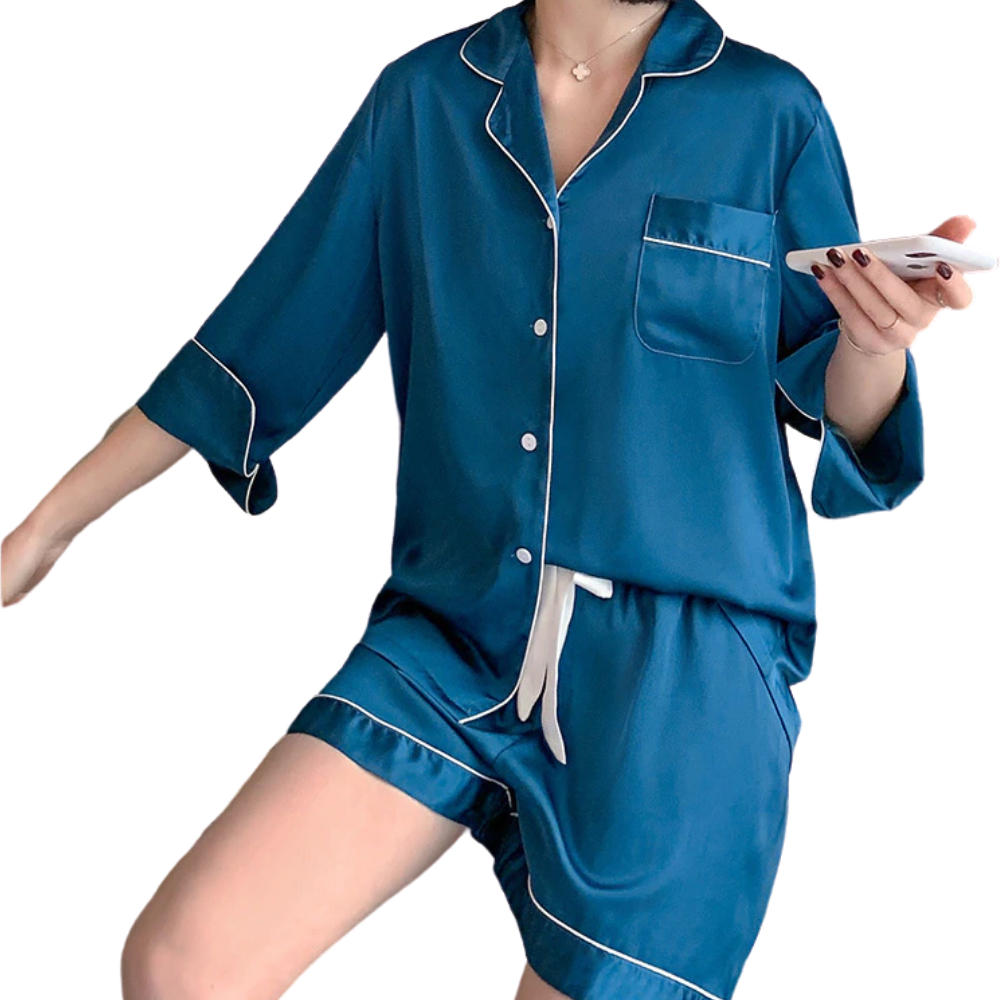 The Soleil set is the kind of set that you can wear to the office paired with jeans or your wide leg pants, on vacation and in the evening. It's cut from lustrous fabric with a relaxed fit and a slightly cropped length, so you can tuck it neatly into high-rise pants without it bunching up. The available hues fits in nicely with this season's primary colors trend.