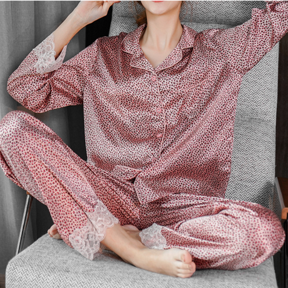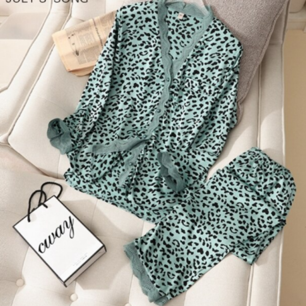 Take a trip to paradise! The flowing fit of these beautiful, soft silk pajamas, will make you feel like you’re drifting away… in a good way. In the vibrant rich animal prints as only silk can carry, trimmed with a splash of contrast color to make all the other clothes in your closet envious.
