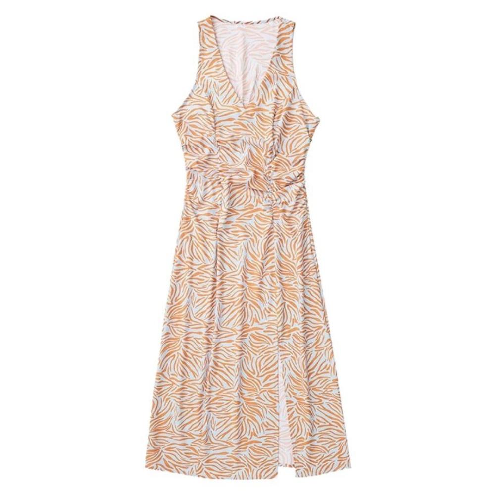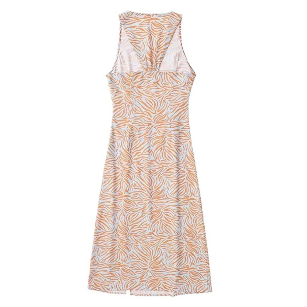 Our Taba is a Midi Dress and Printed Pattern Side Slit Zipper with V-Neckline, Sleeveless.