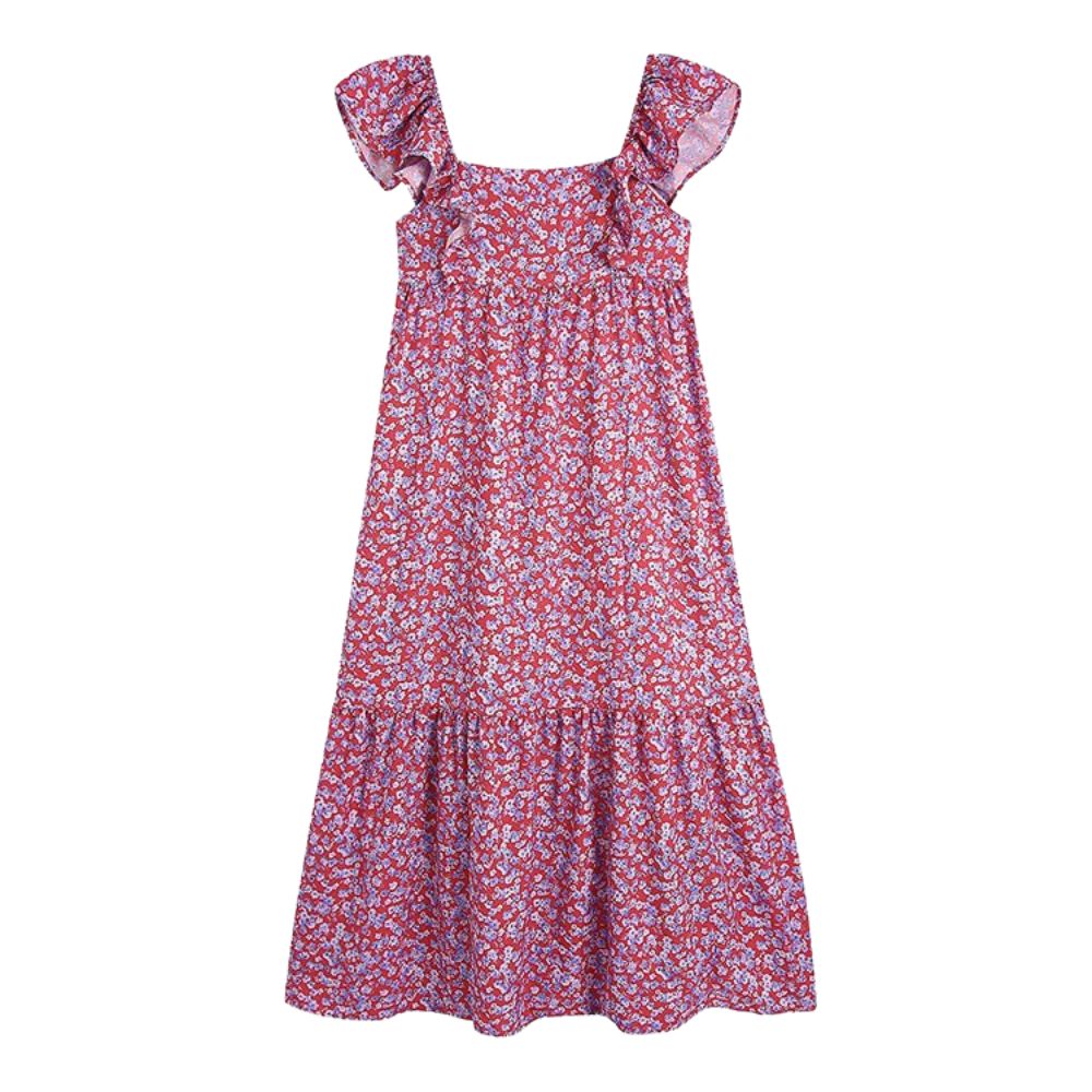 Our Takami is a Midi Dress with Floral Printed Side Zipper