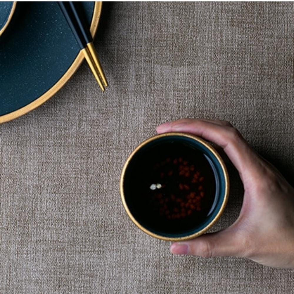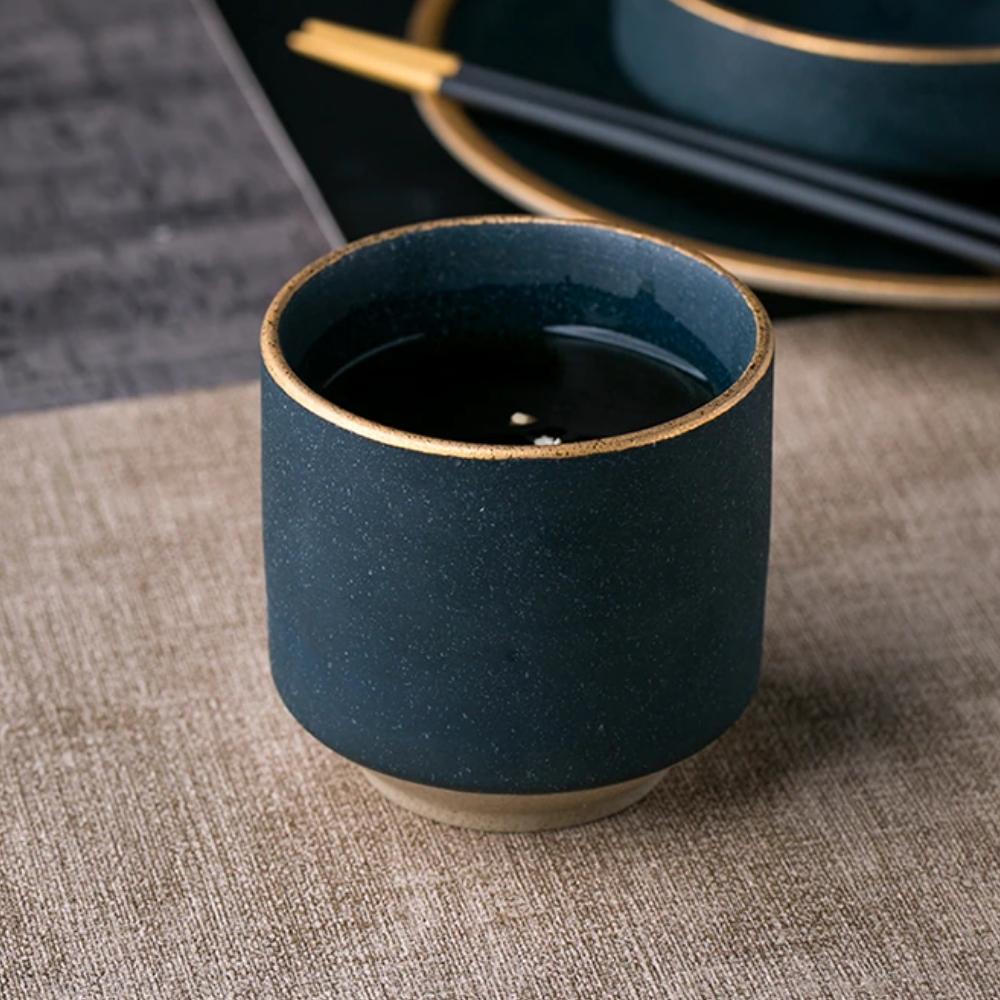 Our Totana deep blue-green cup with gold details. Best paired with Aguilas bowl.