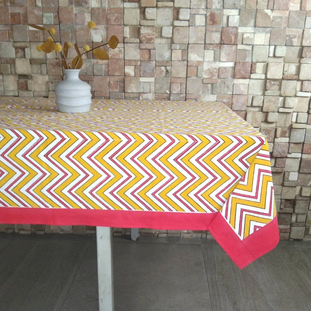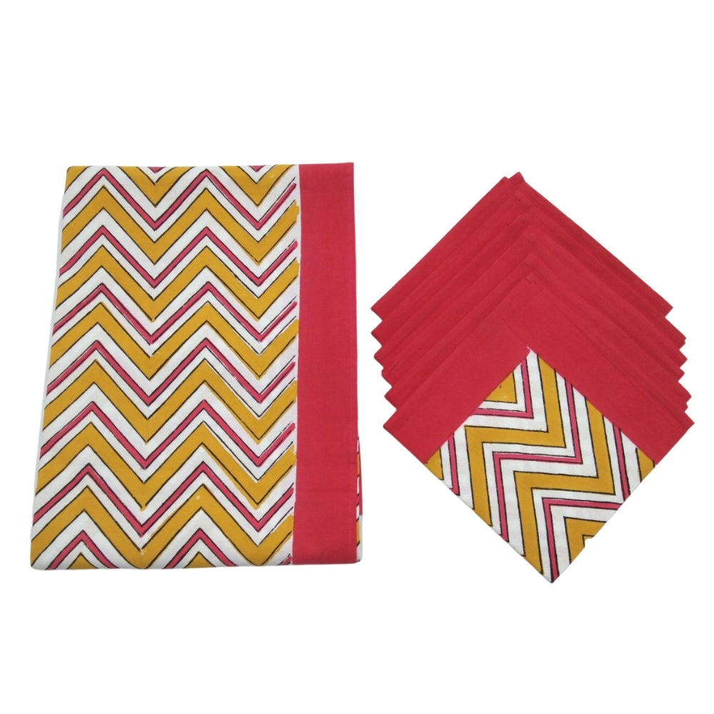 Brighten up your table setting for any occasion with our authentic hand printed Tablecloth Set from India! This lightweight cotton tablecloth is easy to throw over any dining table and is adorned with playful geometrical print to bring a soft texture and whimsical touch to rest of your tableware.