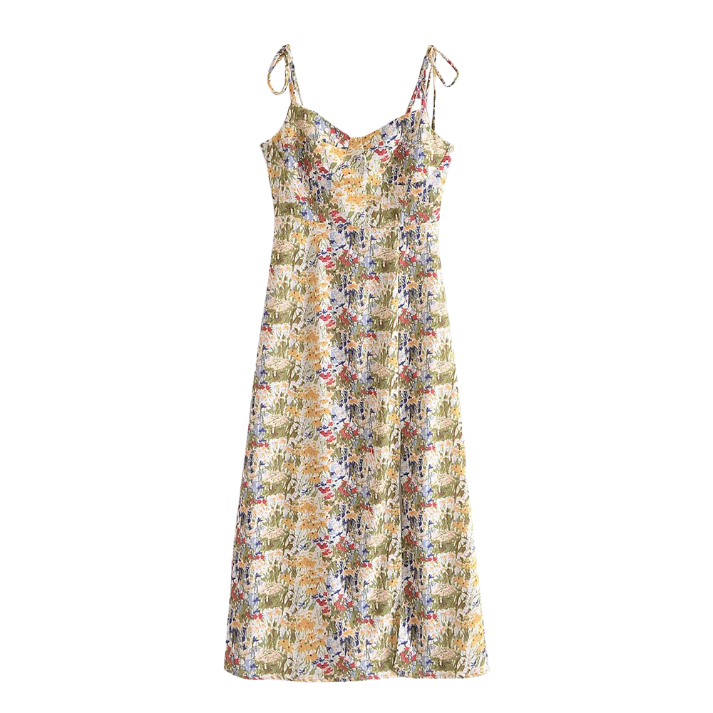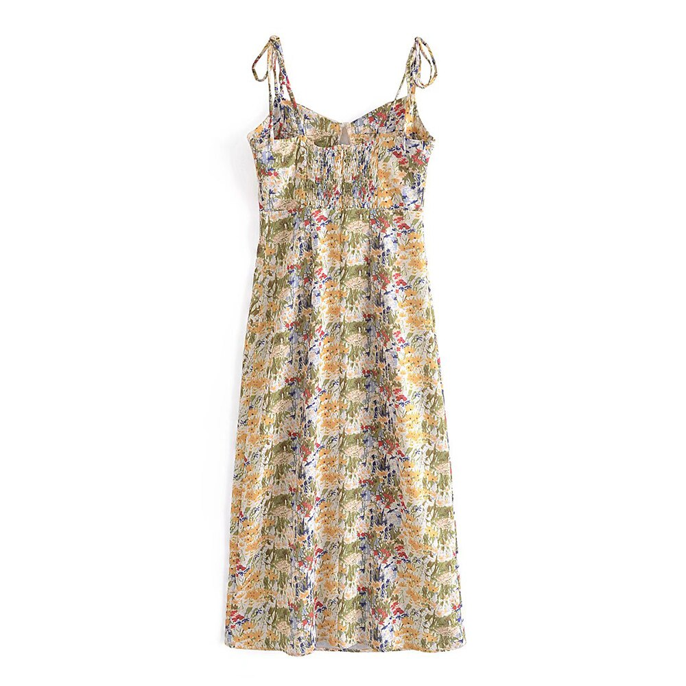 Our Tsuga Midi Dress is a Printed Hollow Out Back Zipper Side Slit with V-Neck. Perfect for Women work and Casual Dress
