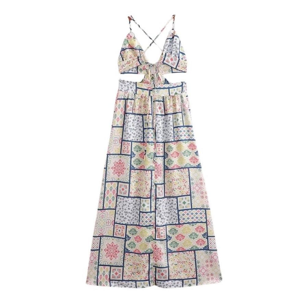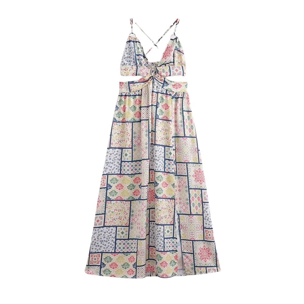 Tsugumi is a Midi Dress with Print Dress Lace Up Ruffles Side Zipper.