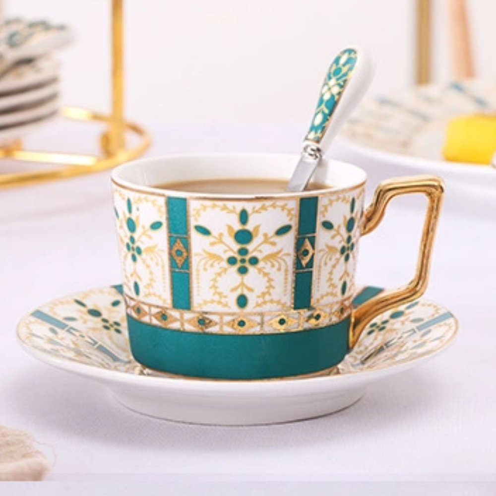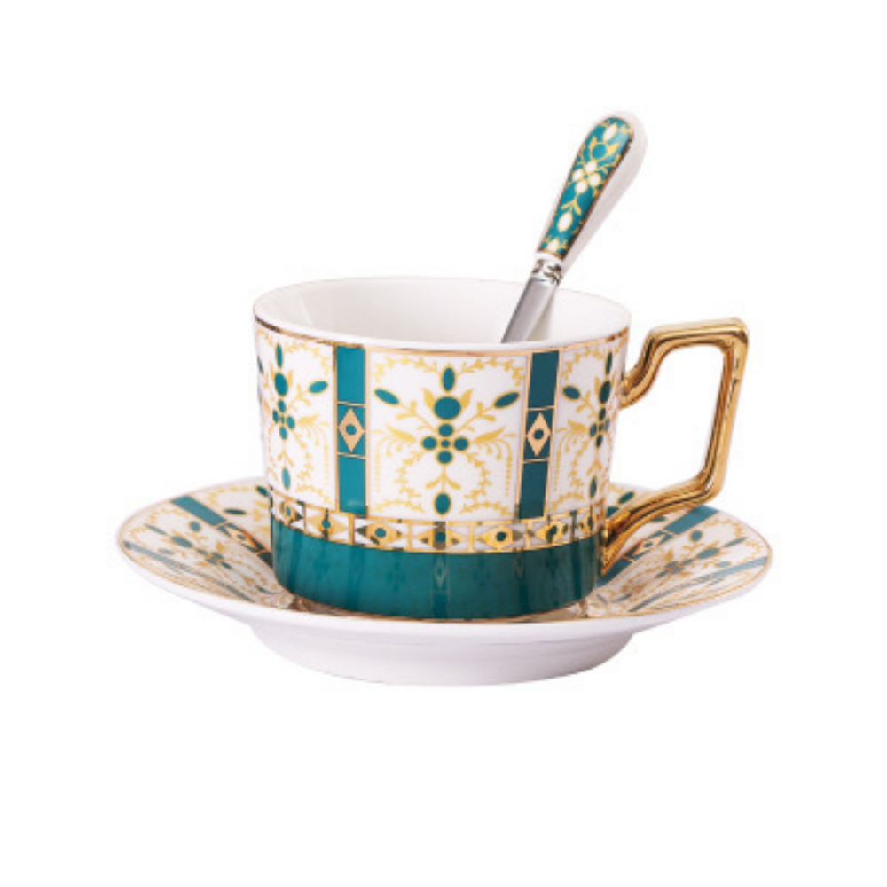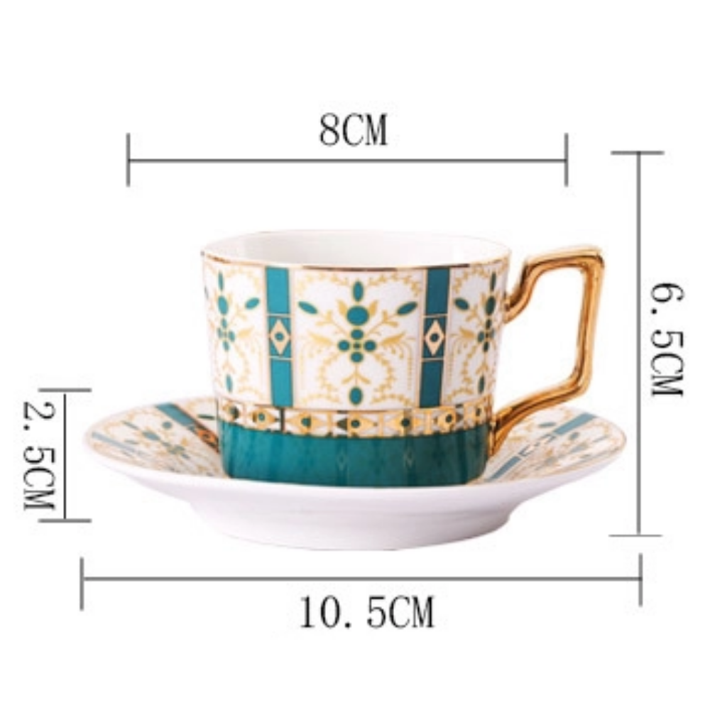 Set comes with one tea cup, one spoon and saucer.
