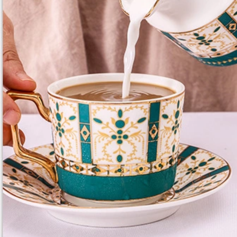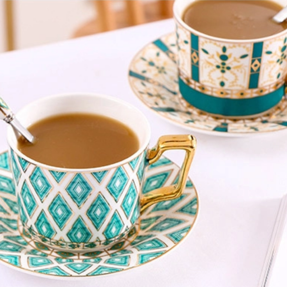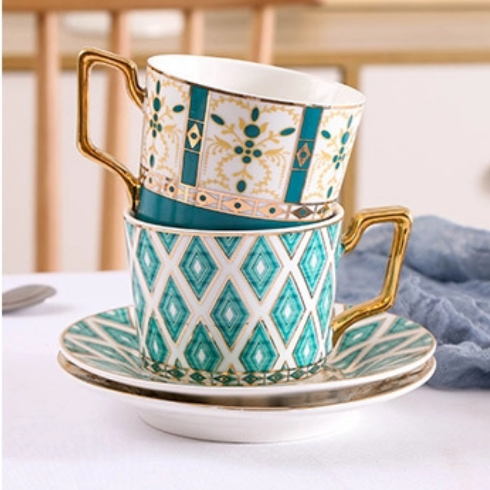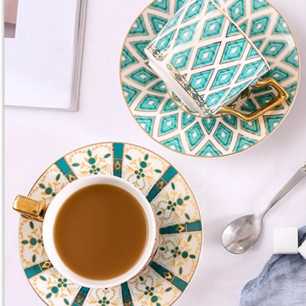 Set comes with one tea cup, one spoon and saucer.