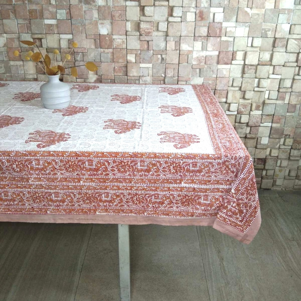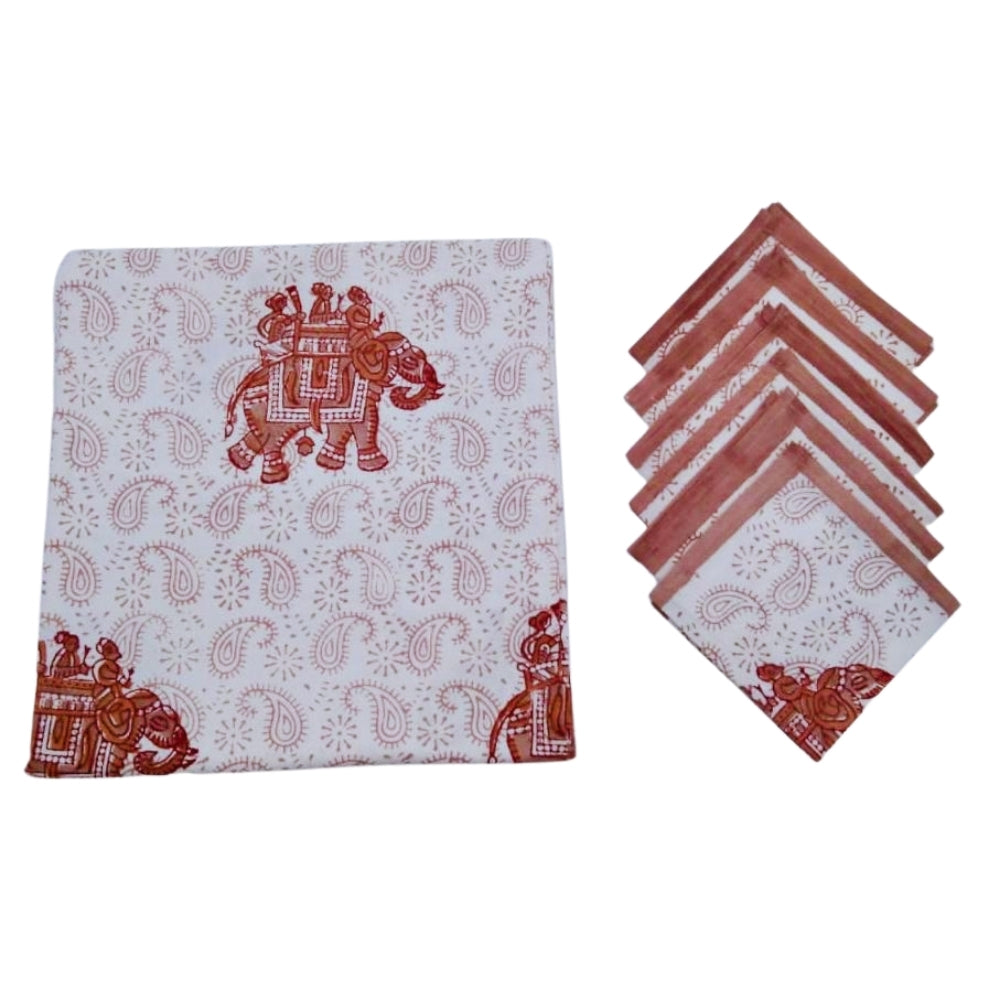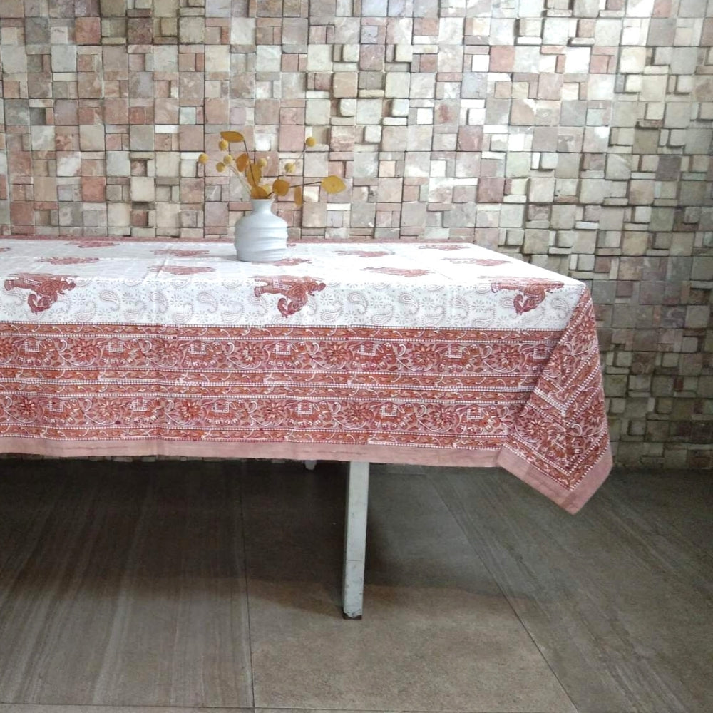 Brighten up your table setting for any occasion with our authentic hand printed Tablecloth Set from India! This lightweight cotton tablecloth is easy to throw over any dining table and is adorned with playful block print to bring a soft texture and whimsical touch to rest of your tableware.