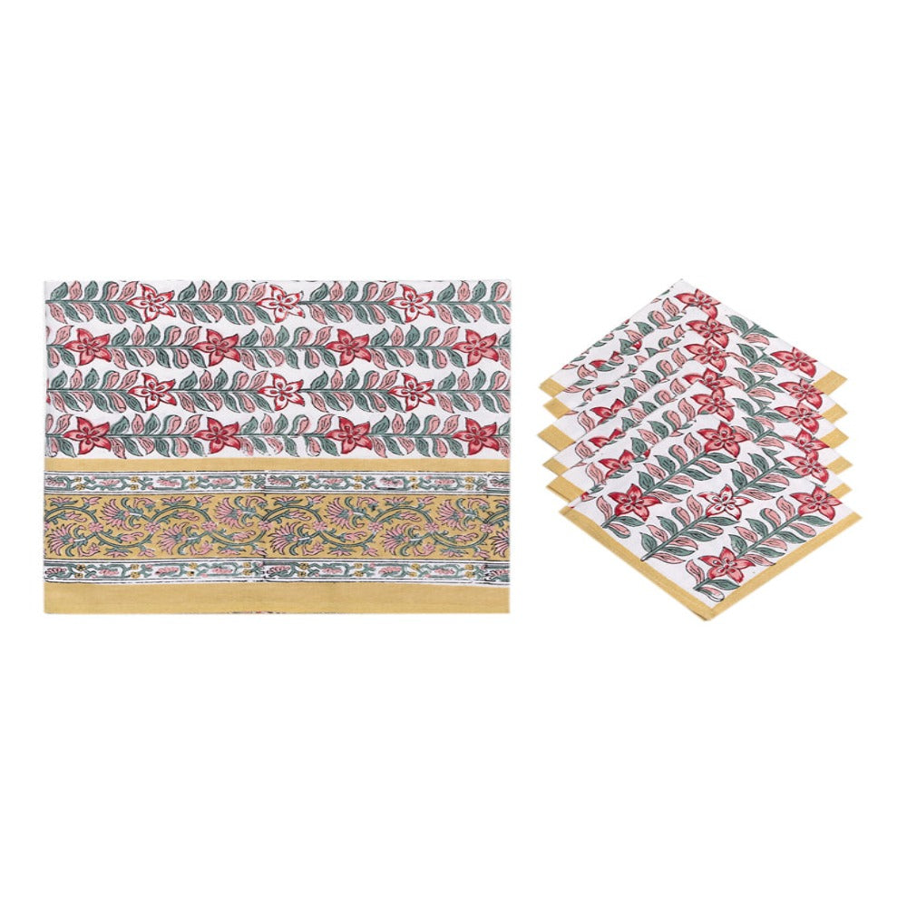Brighten up your table setting for any occasion with our authentic hand printed Tablecloth Set from India! This lightweight cotton tablecloth is easy to throw over any dining table and is adorned with playful block print to bring a soft texture and whimsical touch to rest of your tableware.