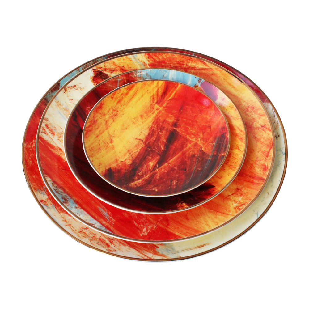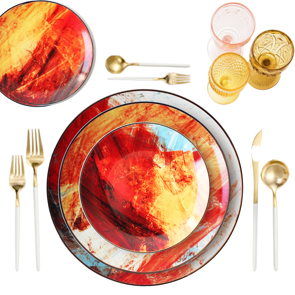 While there’s nothing quite like seeing an actual Murano glass being blown in Venice, this dinnerware comes in a close second. Inspired by the fire and glass movement of Murano glass, our Verona Dinner Collection brings high energy and style to the table. Layer with blue, green or yellow hues that pulls a tone from the design or add to your neutral colors of napkins and placemats for a welcome pop of color.