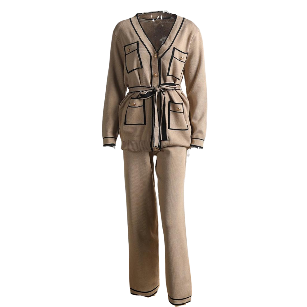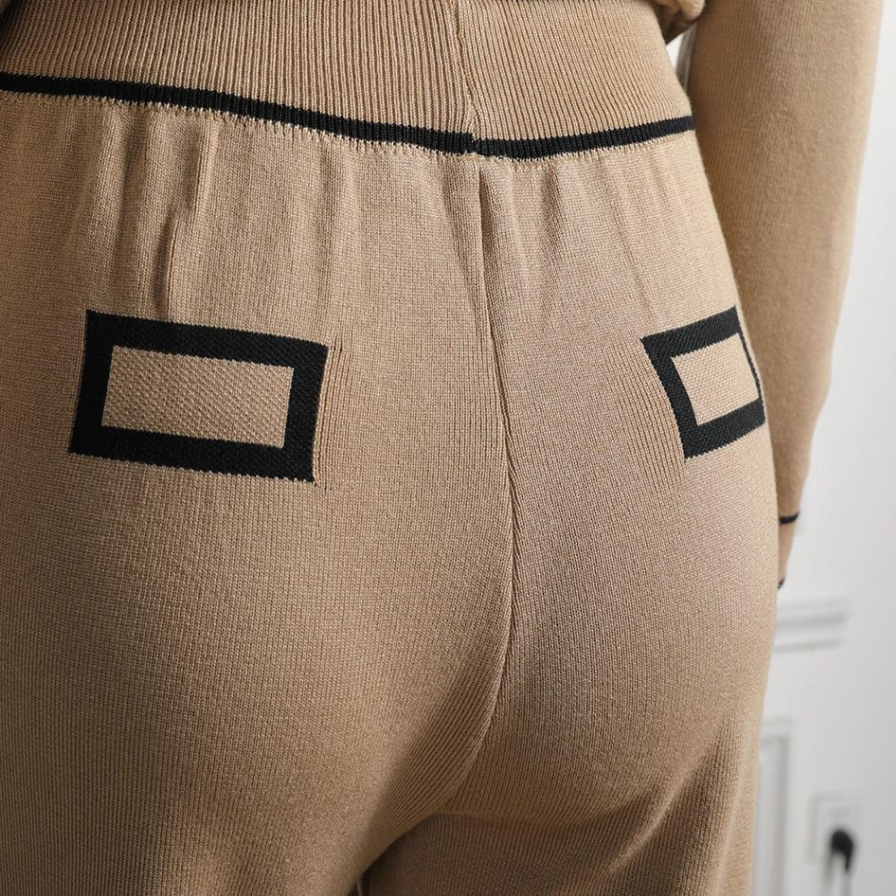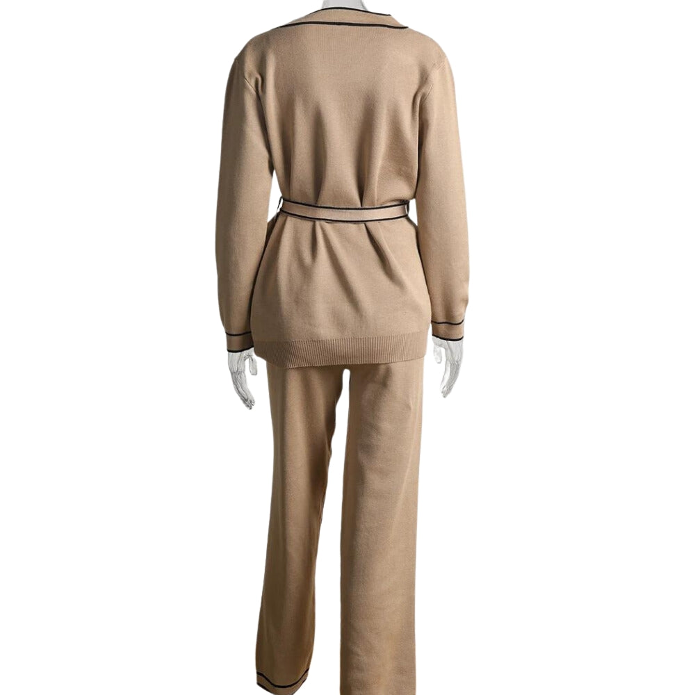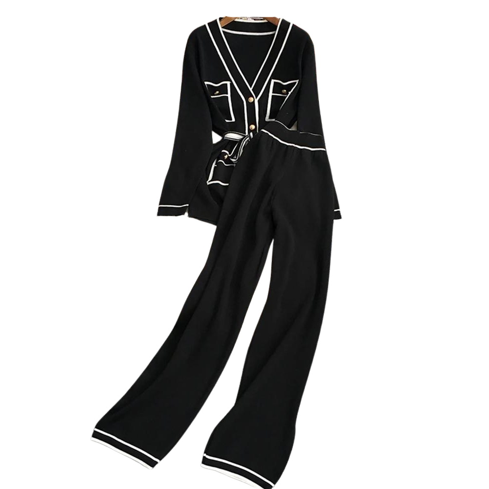 Yuzu Knit Sweater Suits Single Breasted Coats With Wide-leg Pants Sets Casual.